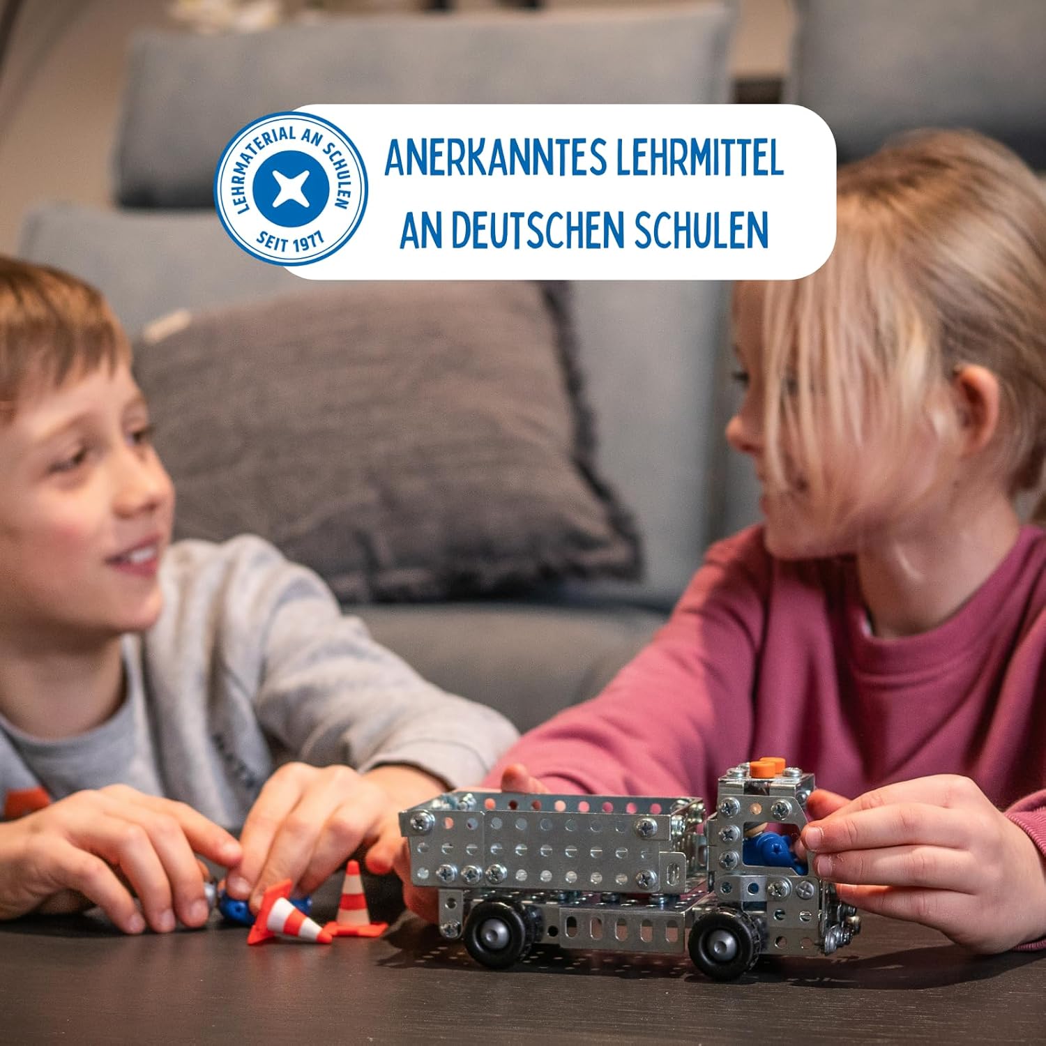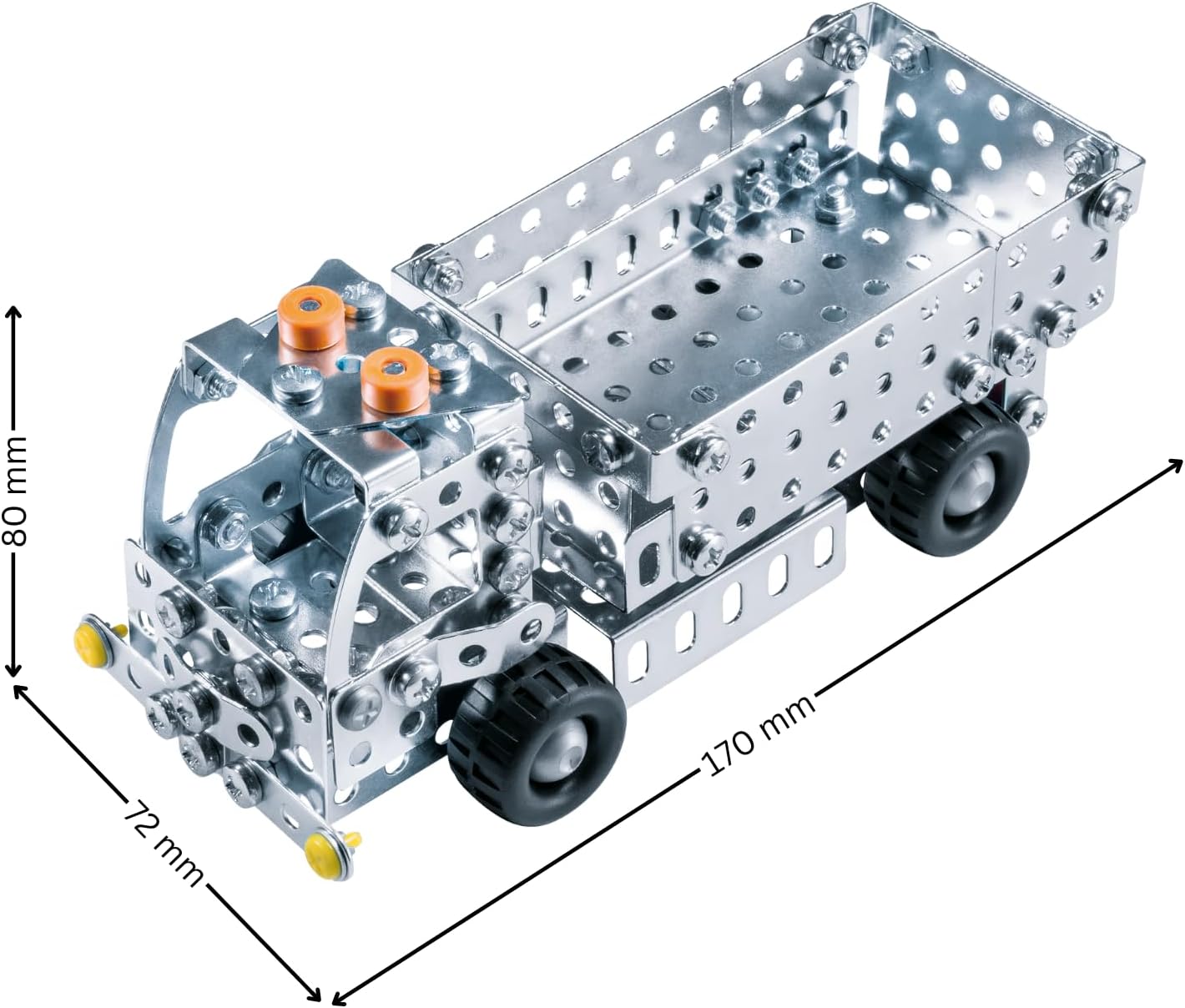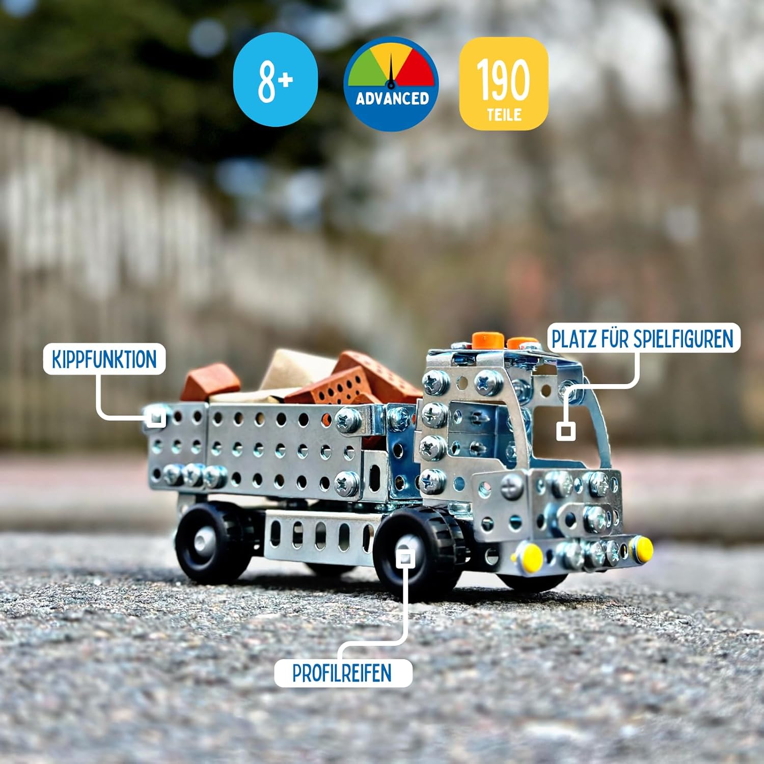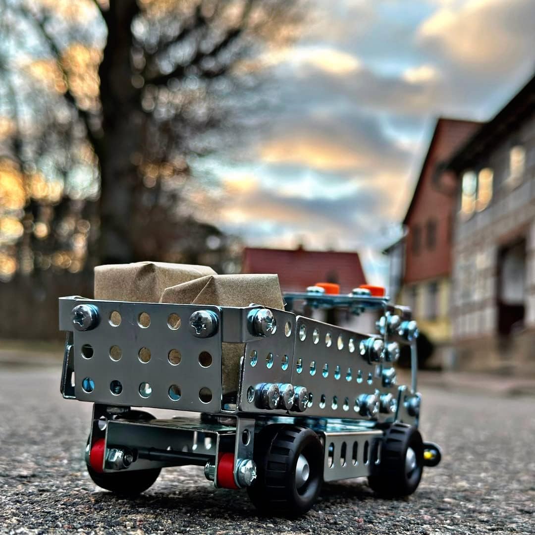 Oltre 190 pezzi garantiscono il divertimento di montaggio dei piccoli ingegneri. Con il set da gioco in metallo si possono entusiasmare ragazzi e ragazze a partire dagli 8 anni per la tecnologia. Ambiente da cantiere nella cameretta dei bambini. Grazie ai suoi pneumatici profilati e al vano ribaltabile per carico e scarico, il camion ribaltabile è particolarmente adatto anche dopo il montaggio per tutti i piccoli lavoratori edili. Durante il montaggio i bambini allenano facilmente le loro abilità motorie, la capacità di pensiero, la pazienza e la creatività. I prodotti eitech sono quindi un materiale didattico riconosciuto nelle scuole Costruire con vero strumento di montaggio: istruzioni illustrate passo dopo passo e tutti gli strumenti necessari sono forniti con il camion ribaltabile.