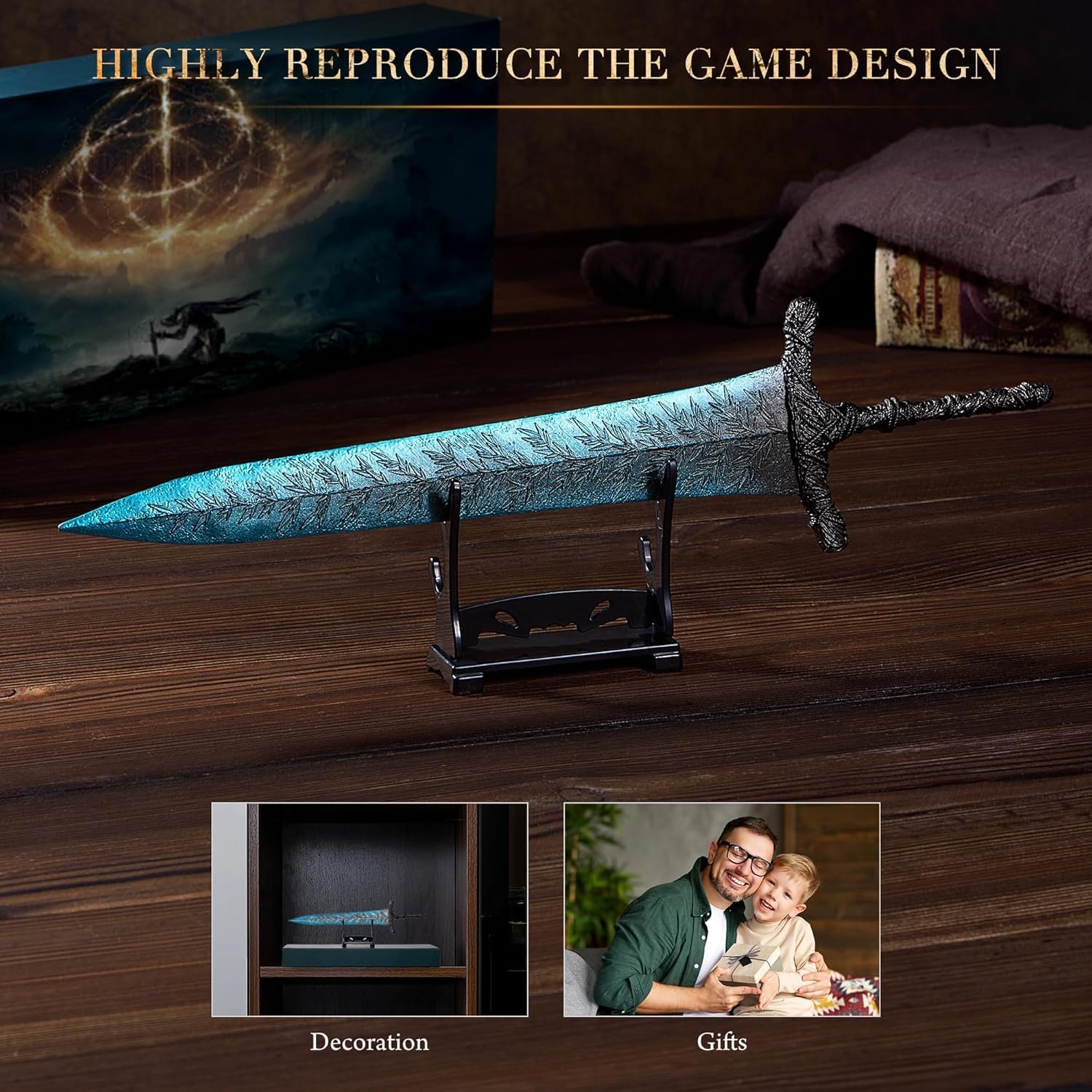 *Materiale: realizzato in lega di zinco di alta qualità, anti abrasione, robusta e durevole, noto come Game Elden Ring Dark Moon Greatword. *Dark Moon Great Sword: conferito da una regina cariana al coniuge per onorare la tradizione di vecchia data, uno degli armamenti leggendari, il corpo della spada trasuda una lucentezza molto sognante, con potenti attributi e un aspetto meraviglioso coesistente. *Moonlight Great Sword Dimensioni: 30 cm/11.8in, è bello nella mano, la squisita lavorazione assicura che ogni dettaglio sia molto realistico, raccogli il modello di spada di Darkmoon e lascia che i sentimenti nel gioco brillino nella realtà. *Decorazione della scrivania: viene fornito con un supporto per il display, decorazioni per la scrivania, collezione per gli appassionati di gioco. Perfetti come regali di compleanno e vacanze per gli appassionati di giochi, realizzati con dettagli intricati, questo pezzo decorativo mostrerà il tuo amore per la popolare serie di videogiochi. *Collezione e regalo: come regalo sorprendente per i fan di Game Elden Ring o un regalo per la raccolta di giochi per i giocatori di anelli Elden, progettate appositamente per i fan del videogioco, questa scatola regalo di fascia alta e realizzata con una spada meravigliosamente realizzata rende anche un regalo unico e indimenticabile per qualsiasi gioco d'azzardo appassionato.