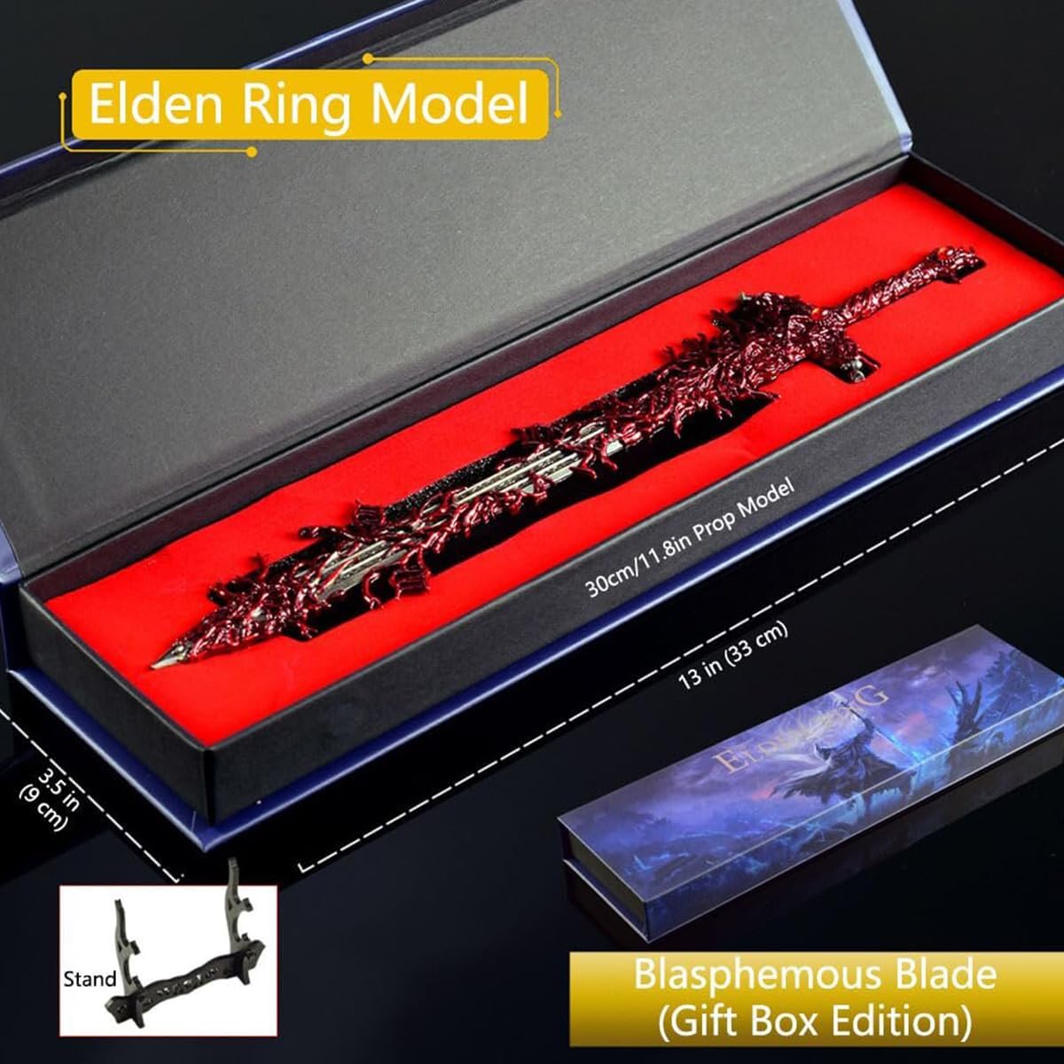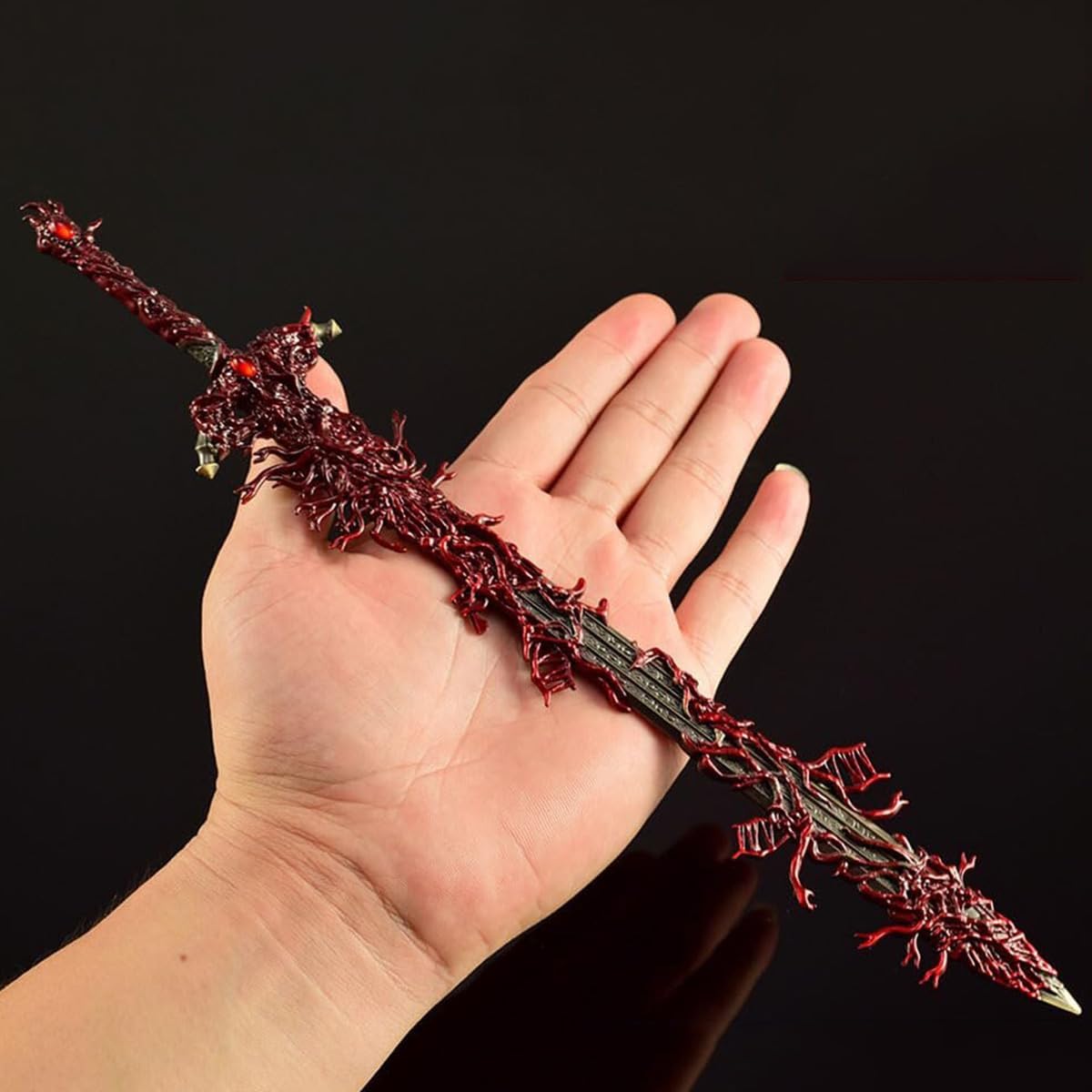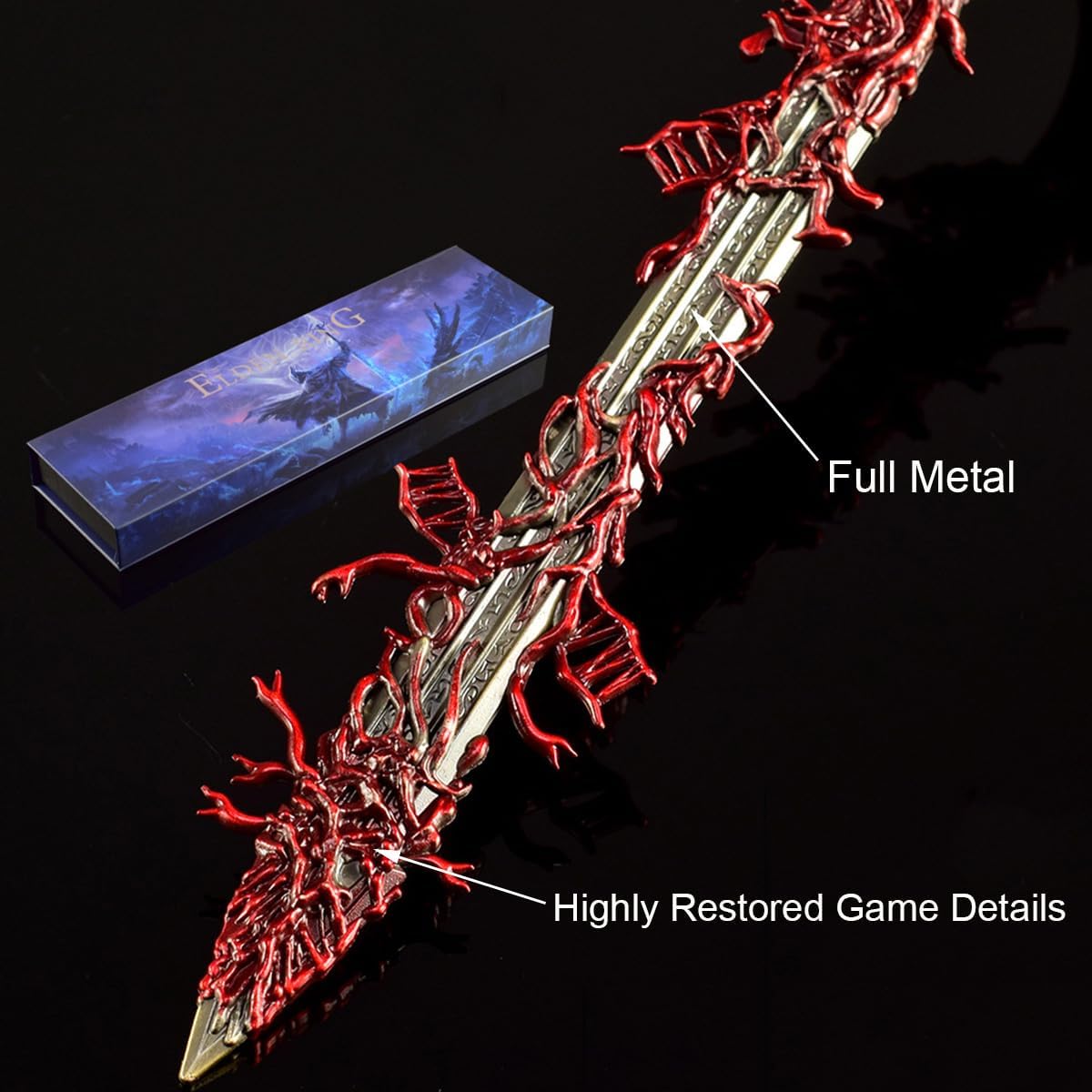 Replica della lama blasfema di Elden Ring: la spada sacra impugnata da Lakkad, il signore della blasfemia. Infusa di fiamme maledette, quest'arma incarna il potere oscuro delle ombre di Erdtree, offrendo ai fan un sorprendente modello da collezione in metallo ispirato al gioco Oggetti da collezione del gioco: questa replica della lama blasfema, realizzata con cura meticolosa, è pensata per veri fan e collezionisti, ricreando fedelmente l'iconica lama blasfema impugnata da Rykard, signore della blasfemia. Ogni dettaglio distorto e ogni texture della carne corrotta sono meticolosamente realizzati per i collezionisti di merchandising di elden rings Materiale metallico di alta qualità: forgiato in lega di zinco di alta qualità con finitura antiruggine, questo resistente mini-espositore da gioco cattura l'oscurità della lama blasfema. Il suo design robusto lo rende ideale come espositore per sale giochi, espositore per ufficio o decorazione fantasy per la scrivania Elegante decorazione da scrivania: arricchisci il tuo spazio con un modello degno di qualsiasi collezione dark fantasy. Perfetto come decorazione per la scrivania della sala giochi, è apprezzato da collezionisti, appassionati di giocattoli e amanti dei cimeli del gaming Regalo perfetto per i gamer: cerchi regali per i fan di Elden e dark fantasy? Questa replica è un regalo indimenticabile, che offre sia utilità che orgoglio per il fandom. Da espositore da collezione a decorazione unica per la scrivania della sala giochi, è il pezzo perfetto per qualsiasi appassionato di giochi