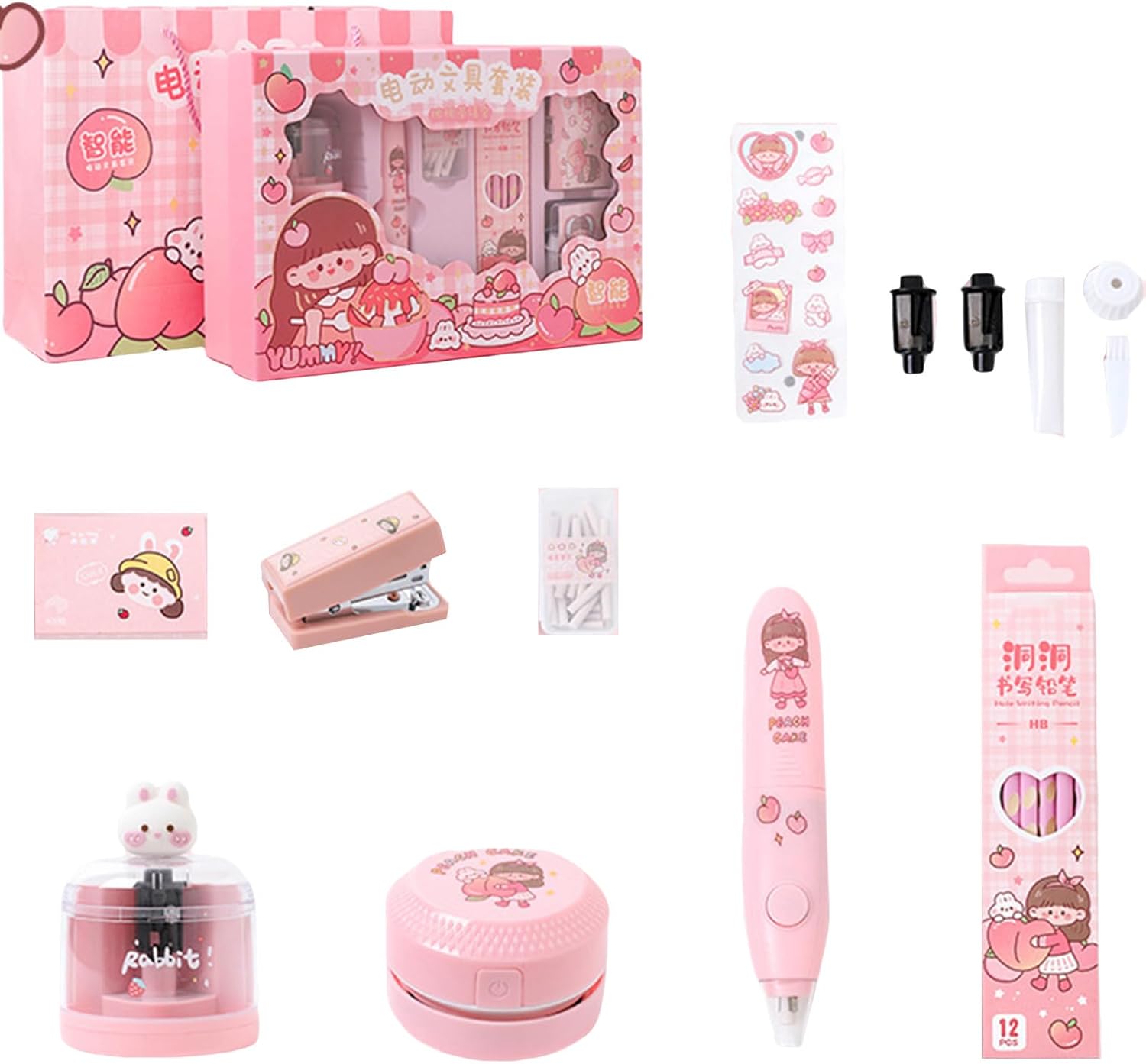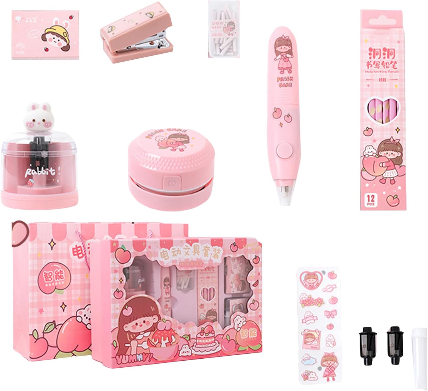 Adatto agli studenti che necessitano efficienza in classe, impiegati che gestiscono compiti e genitore cerca educativi alle forniture scolastiche che fondono la funzionalità con l'estetica giocosa Repubblicato in plastica ABS, set accessori per la scuola elettrica a batteria funziona sotto rumore 40 garantendo contempo bambino sicuro Questo set forniture per la scuola studenti elettriche combina gomma elettrica con 20 ricariche, affiliazione a matita elettrica, 12 matite in legno, pinzatrice con 400 alimenti, spolverino elettrico, adesivo, adatto a studenti e professionisti suo meccanismo silenzioso consente utilizzare perfettamente le biblioteche e le studio, mentre le stazioni multifunzionali della scuola studentesca impostano progetto compiti a casa set cartoni animati combina praticità con fascino stravagante, rendendo ottimo per la scrivania organizzata durante l'esame