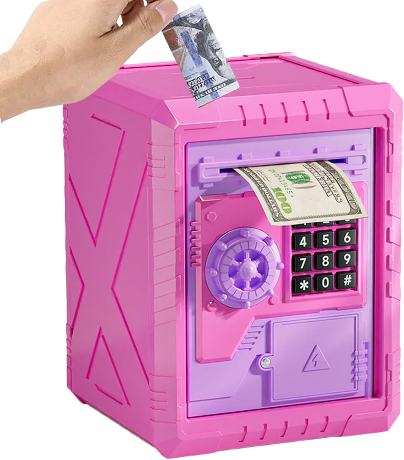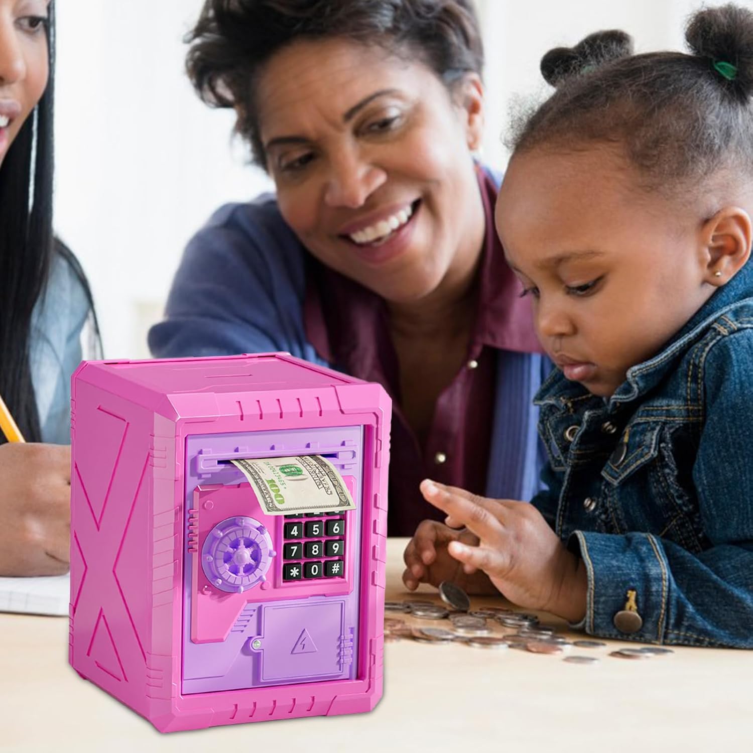 Materiale ecologico: progettato con un materiale ABS robusto ed ecologico, questa banca elettronica in moneta assicura un risparmio sicuro, grazie ai suoi cerchi lisci e alla costruzione affidabile per un uso duraturo Incoraggia un risparmio positivo: i bambini devono solo posizionare banconote all'ingresso, simulando un vero processo di deposito bancno Facilità d'uso: la nostra banca di denaro elettronica consente ai bambini di sviluppare conoscenze finanziarie senza sforzo attraverso un pannello d'uso intuitivo progettato specificamente per loro. Con pulsanti chiari e un'interfaccia di facile utilizzo, i bambini possono facilmente depositare e prelevare denaro Smart Financial Learning: incoraggiando l'uso quotidiano, la nostra banca elettronica di denaro per bambini aiuta a sviluppare una prospettiva salutare sul denaro. Instilla abitudini sagge come spese di pianificazione, risparmio, gratificazione ritardata e migliori capacità decisionali finanziarie Convenienza di risparmio a lungo termine: dare alla crescita finanziaria di tuo figlio un vantaggio sicuro con la nostra banca elettronica in denaro per bambini, fornendo un ampio spazio interno per detenere una grande somma di banconote e ottimo per l'accumulo di risparmi a lungo termine