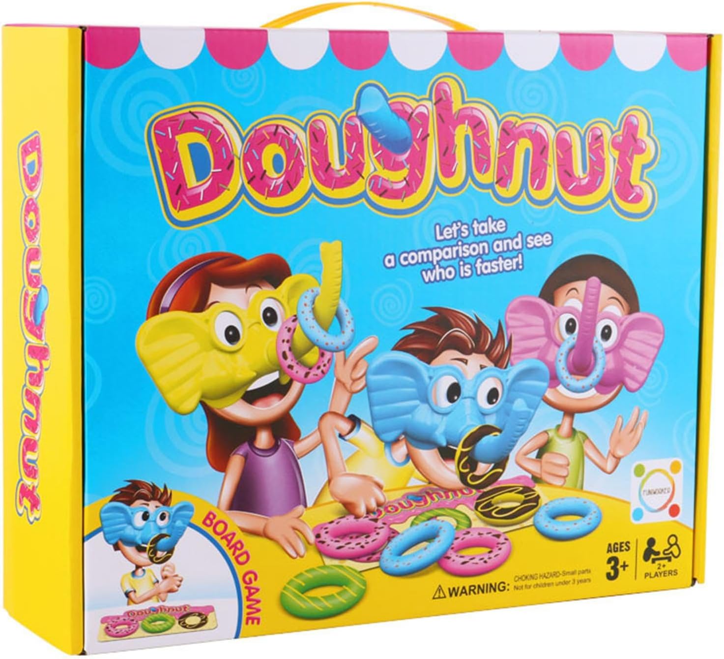 Giochi di puzzle: cercare di catturare le ciambelle in questo gioco di strategia pieno di azione che potrebbe essere un po 'di fortuna. Divertenti giochi competitivi con altri. Gioco di festa con amico: adatto a e adulti per giocare, massimo 4 giocatori, goditi questo divertente gioco con i tuoi amici in compleanno, vacanze, festa di nozze. Facile da giocare: assembla il volto degli elefanti con il tuo, quindi usa il naso dell'elefante per recuperare lo spettacolo di ciambelle sulla tua carta d'azione, metti le tue ciambelle in ordine e il più veloce vince il gioco. Puoi staccare la copertina dopo aver giocato. Materiale durevole: il gioco da tavolo è sicuro per loro. Il materiale ABS è sicuro e durevole, puoi giocarlo per molto tempo. Regalo ideale: questo divertente gioco di ciambelle crea un'atmosfera deliziosa. Una buona scelta come regalo di festa per amici e amici.