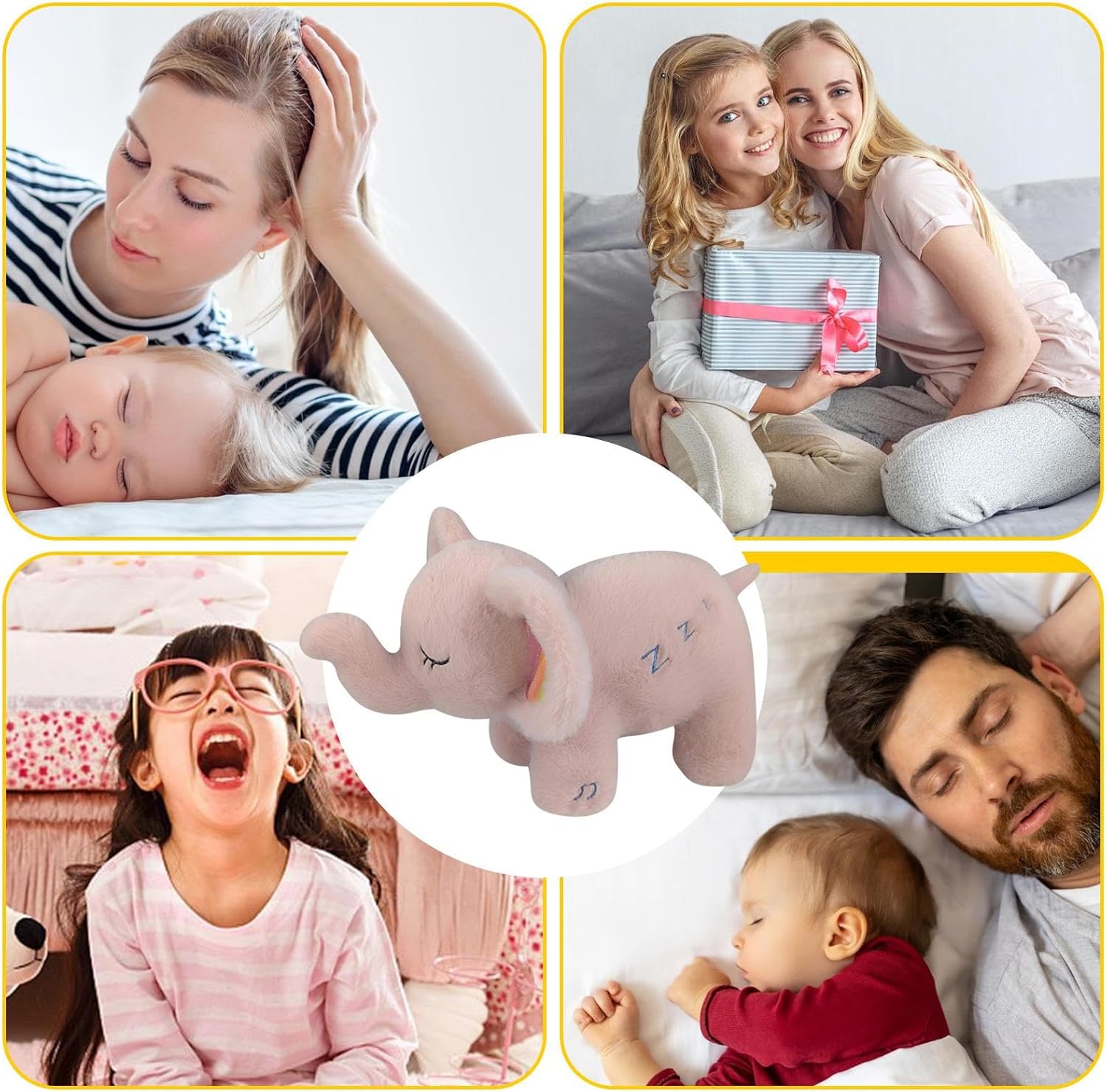 Materiale avanzato: progettato con materiali di alta qualità, il morbido peluche e i bordi lisci di questo elefante offrono un ambiente di sonno accogliente e sicuro per un riposo notturno tranquillo Routine della buonanotte migliorata: immergi il tuo bambino in una rilassante routine della buonanotte con la luce scarsa e il suono morbido del Sound Sleeping Elephant. La sottile azione respiratoria crea un effetto calmante che li aiuta a dormire comodamente Design affascinante: l'espressione del simpatico elefante addormentato del design di questo elefante addormentato crea un'atmosfera deliziosa e accogliente, rendendolo un'aggiunta perfetta a qualsiasi stanza Facile da usare: goditi un sonno profondo e tranquillo con il Sound Sleeping Elephant. Basta accenderlo con le batterie, senza bisogno di configurazioni complesse, risparmiando e fatica Regalo fantastico: migliora la routine della buonanotte dei tuoi bambini con il Sound Sleeping Elephant. I suoi suoni rilassanti forniscono un ambiente rilassante per una notte di sonno tranquillo, rendendolo il regalo per i bambini