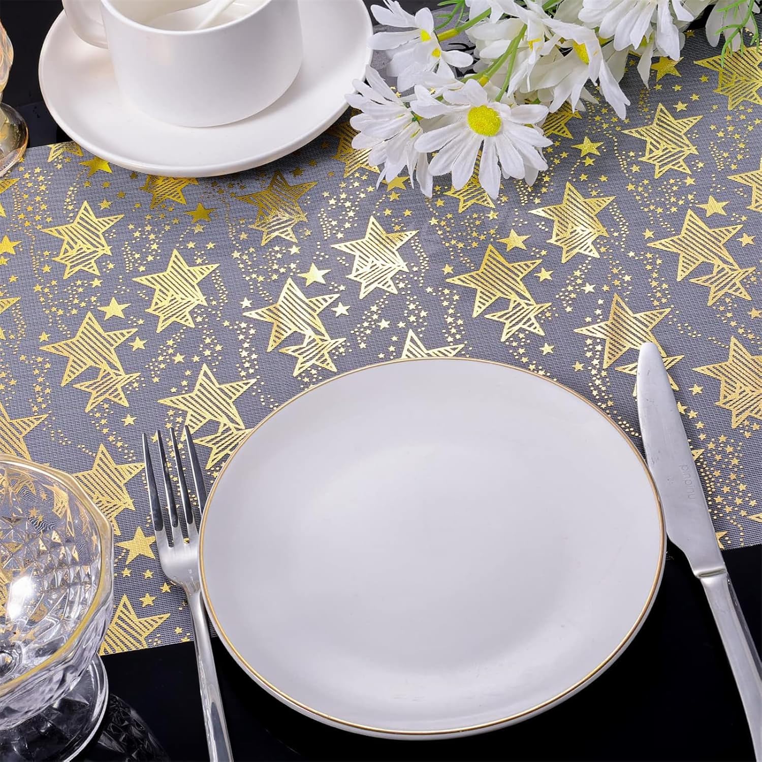 Abito per le casalinghe più esigenti, organizzatori matrimoni e organizzatori eventi che apprezzano la decorazione elegante Trasforma le tabelle ordinarie in spettacoli straordinari con questo corridore da tavolo per feste, garantendo che la tua celebrazione elegante che sofisticata Realizzato in tessuto in poliestere, questo runner da tavolo è facile da pulire e progettato per un uso ripetuto senza sbiadire Perfetto per matrimoni, feste compleanno, incontri per le vacanze e altro ancora, questa tovaglia scintillante migliora l'ambiente da tavolo con i suoi design accattivanti Eleva la tua esperienza culinaria con rotolo tavolo, dispone un lussuoso design stelle timbrazione oro che aggiunge un tocco eleganza a qualsiasi evento