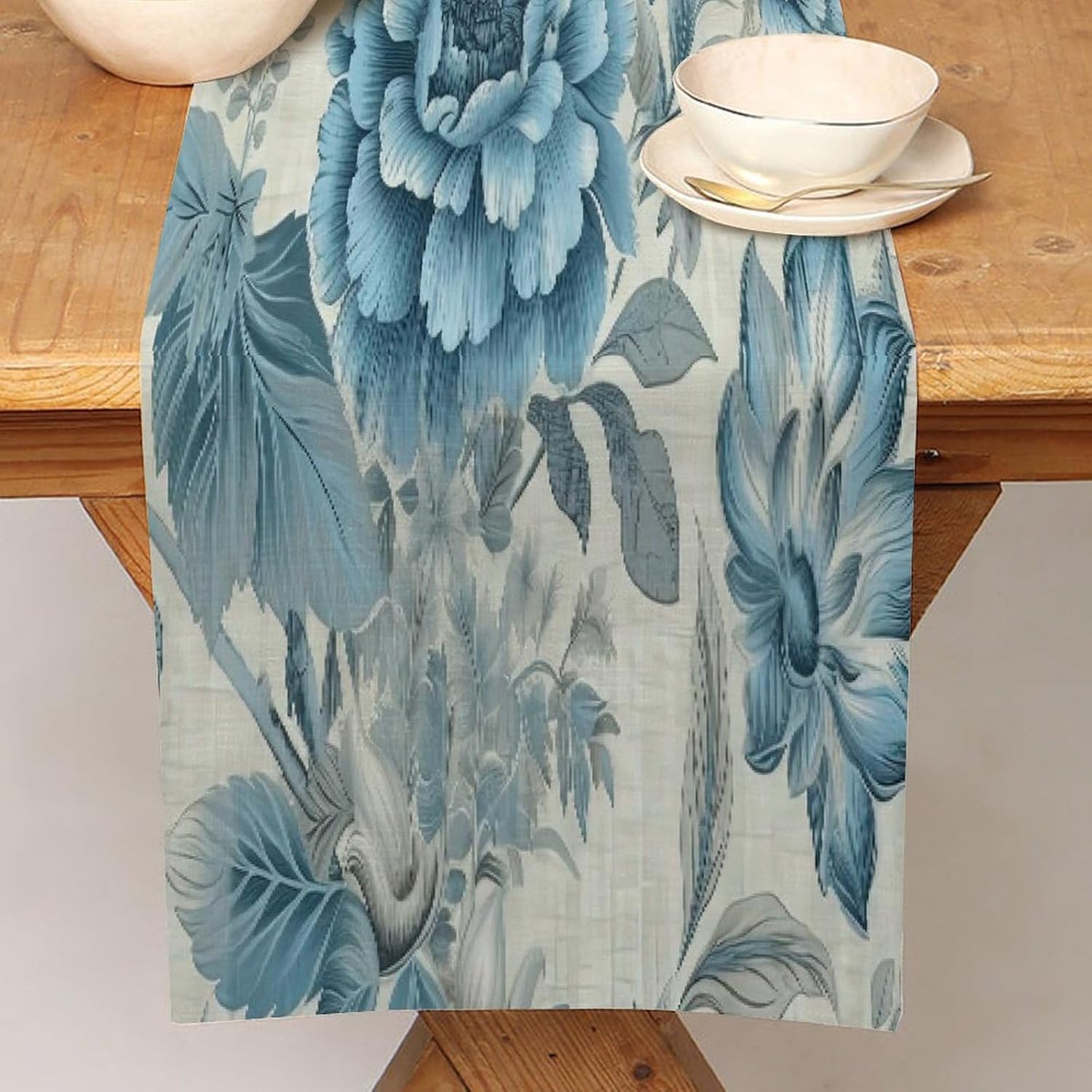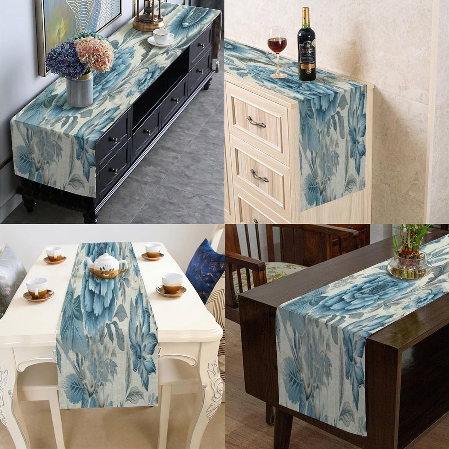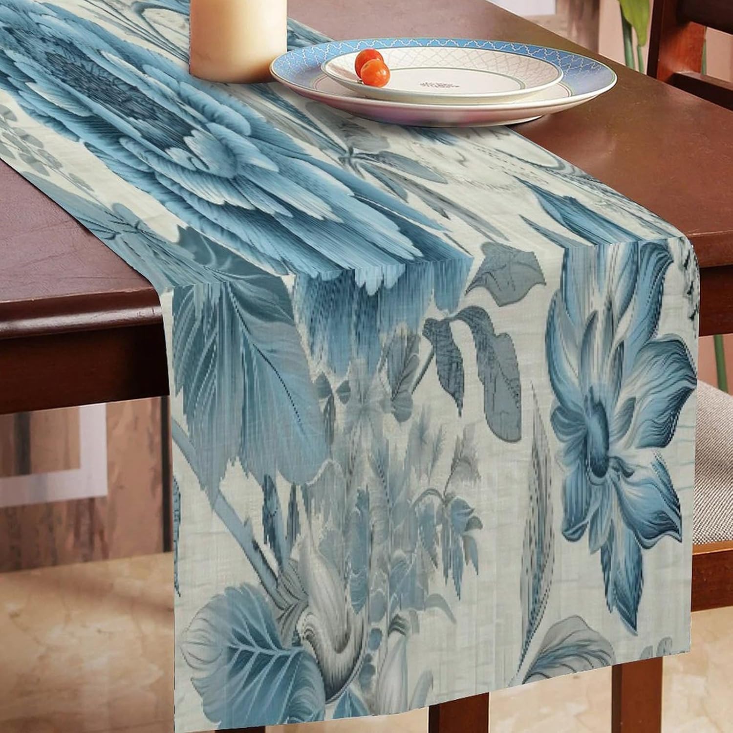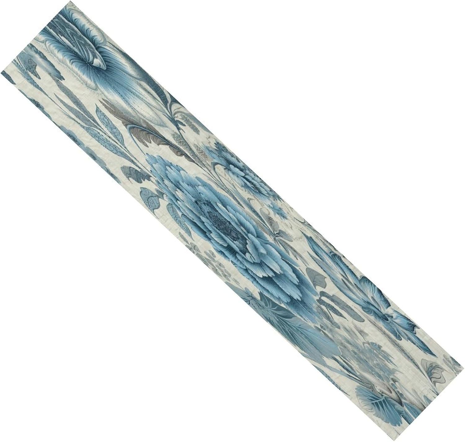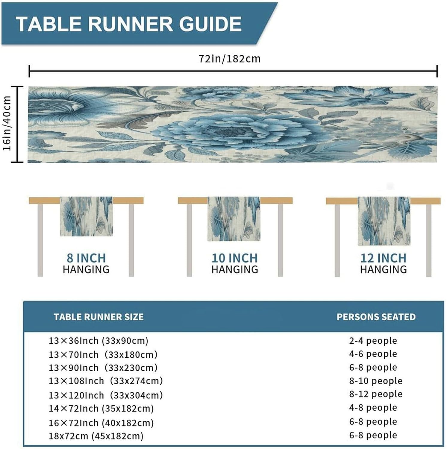 Elegante runner da tavola in cotone e lino, con motivo spa su lino, colore blu, 40,6 x 182,6 cm, per sala da pranzo, vacanze, decorazione per giardino, matrimoni, ricevimenti