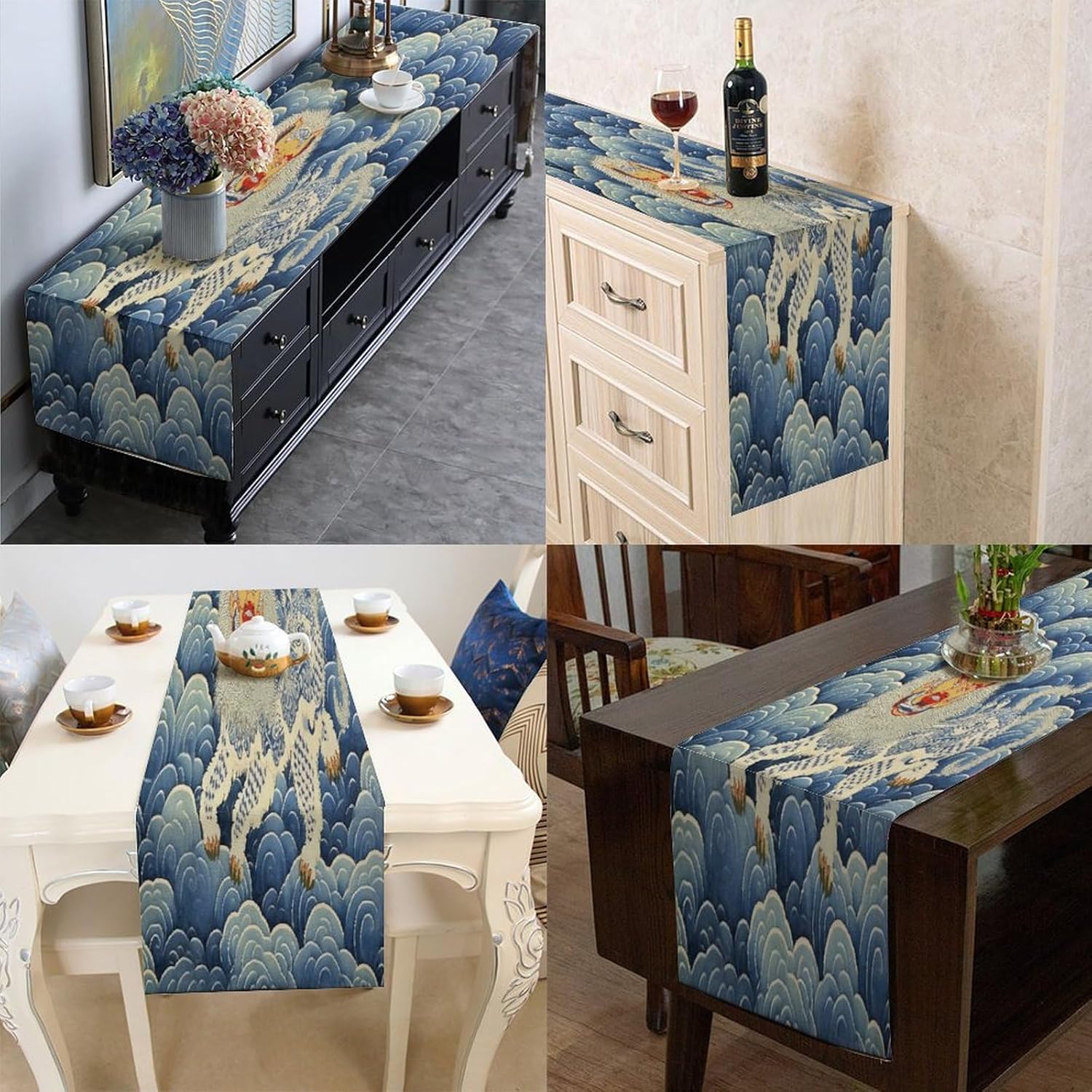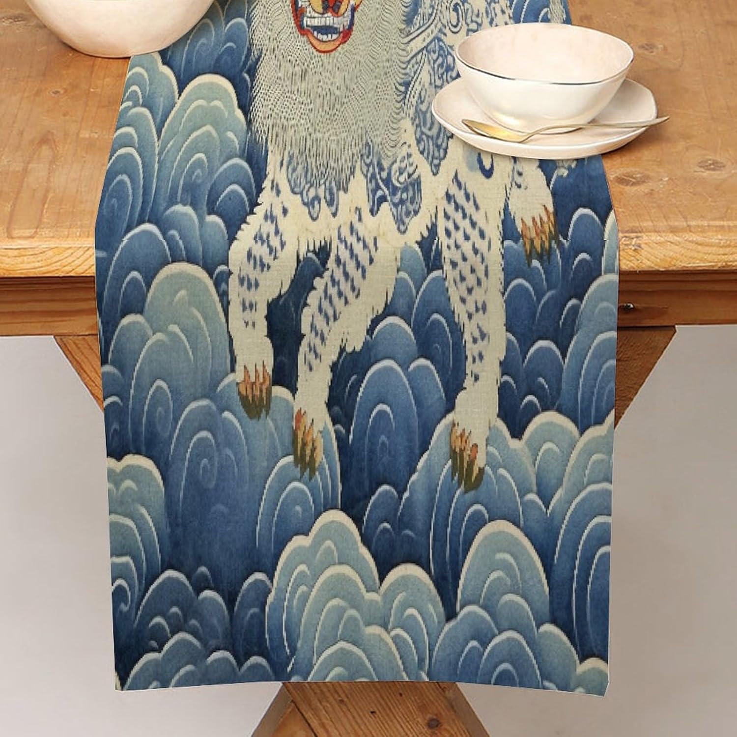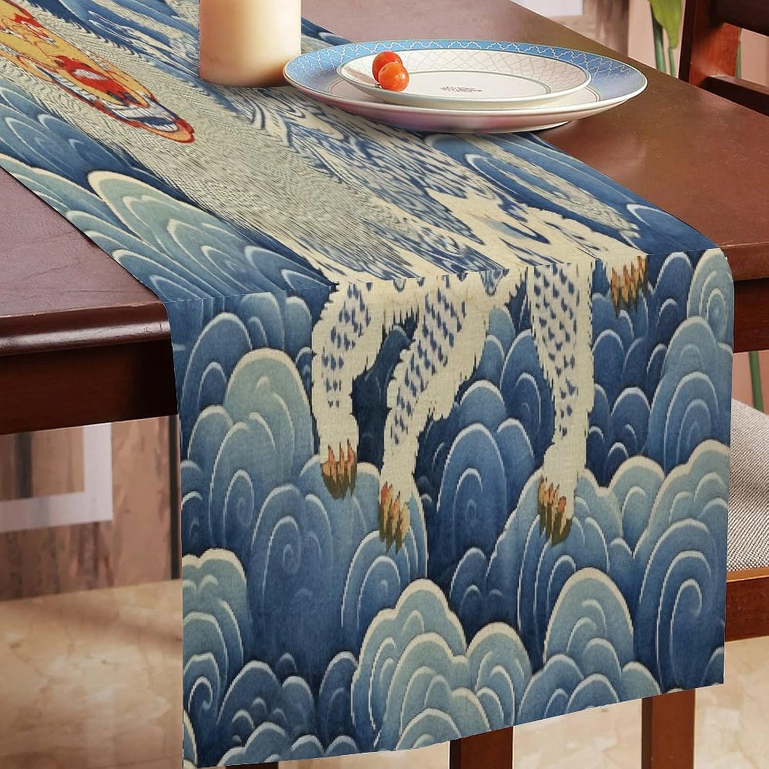 Elegante runner da tavola in cotone e lino, motivo tigre tibetana, 33 x 108 cm, per sala da pranzo, vacanze, decorazione per giardino, matrimoni, ricevimenti