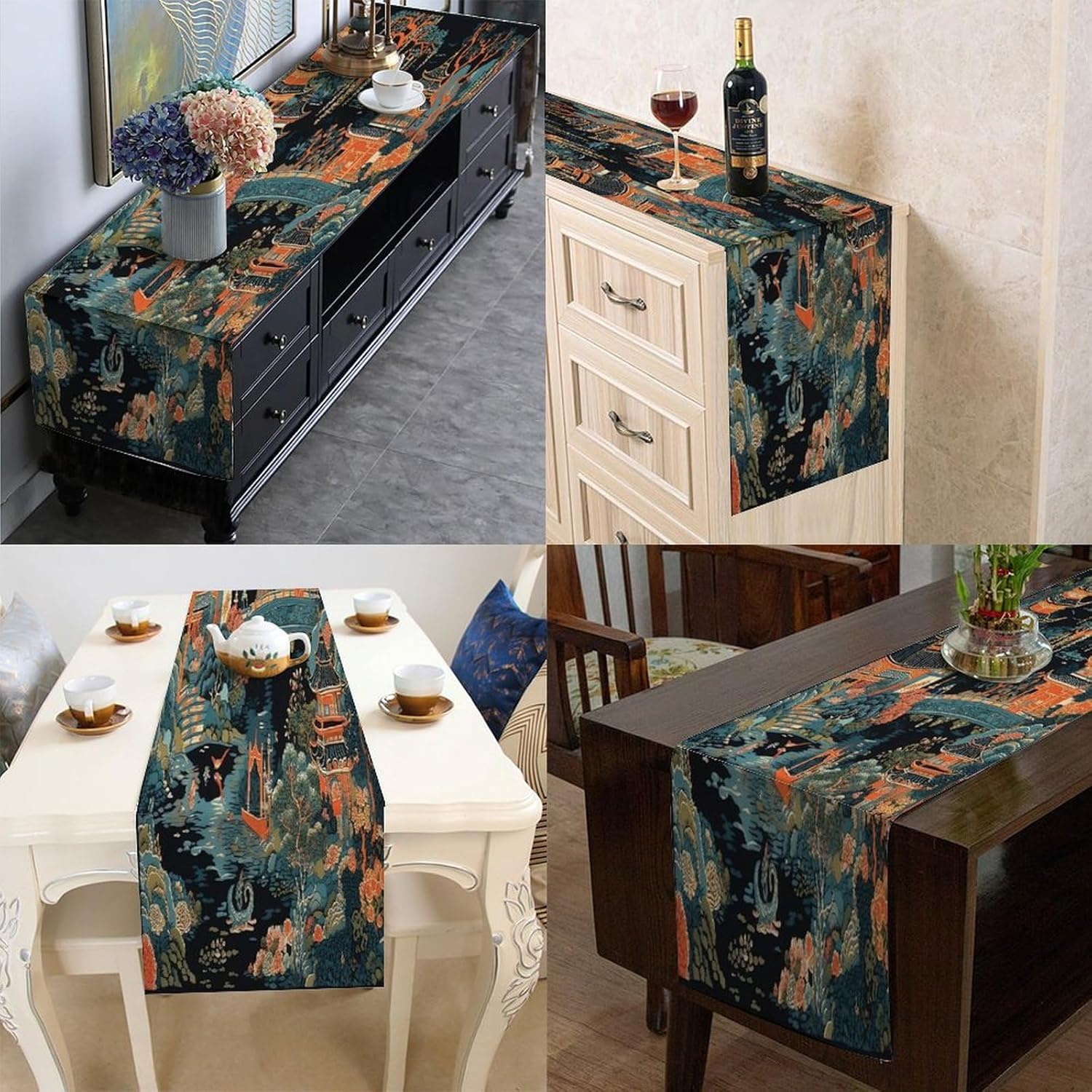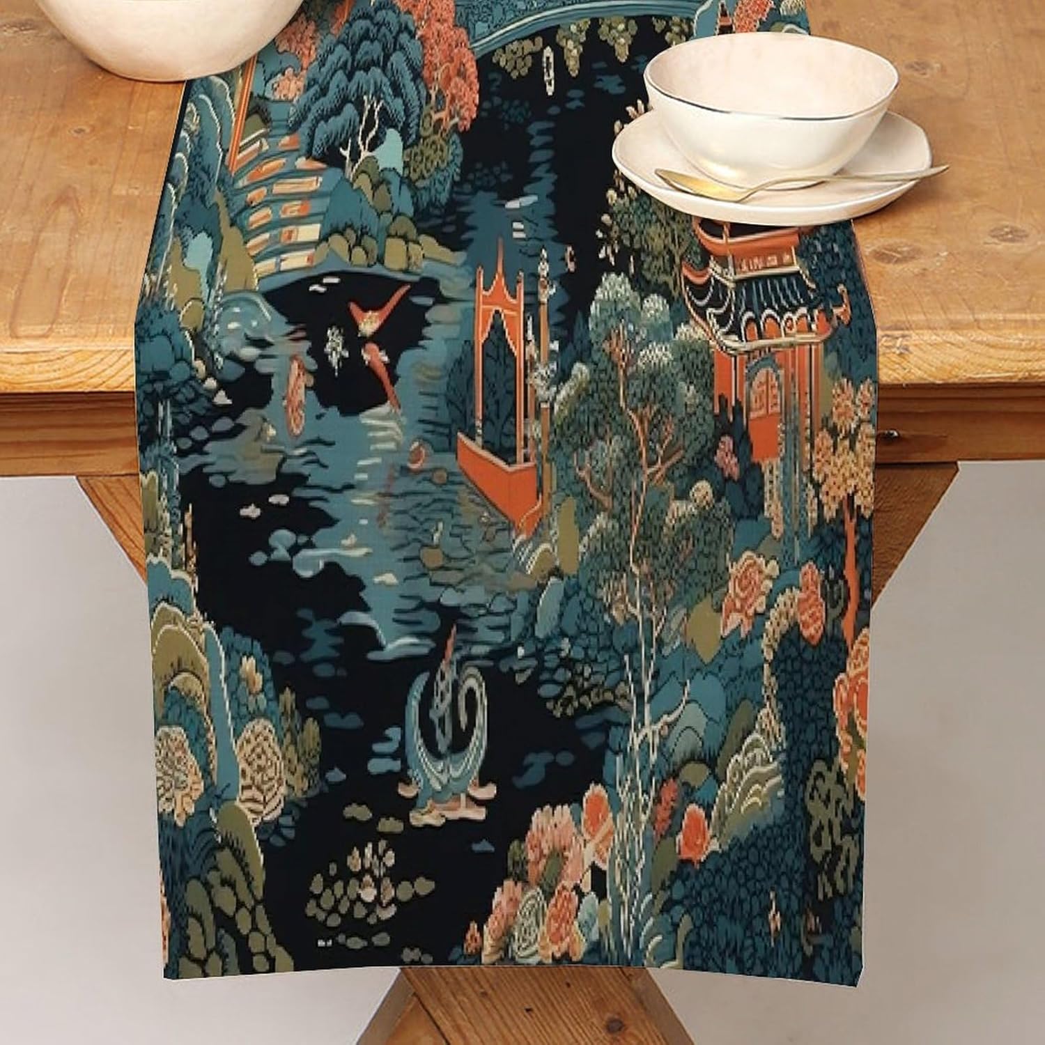 Elegante runner da tavola in cotone e lino, stile pagoda, color carbone, corallo, 33 x 120 cm, per sala da pranzo, vacanze, decorazione per la casa, giardino, matrimoni, ricevimenti