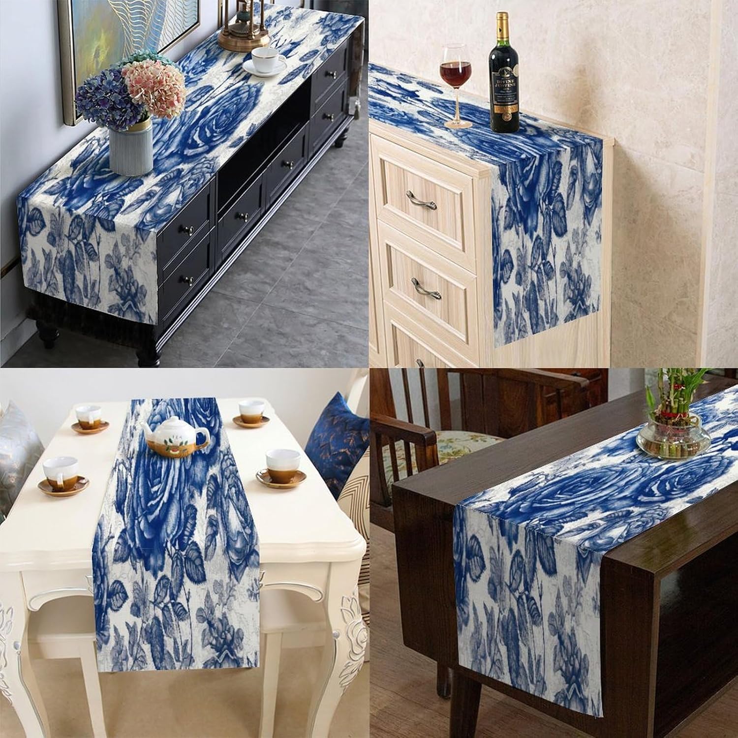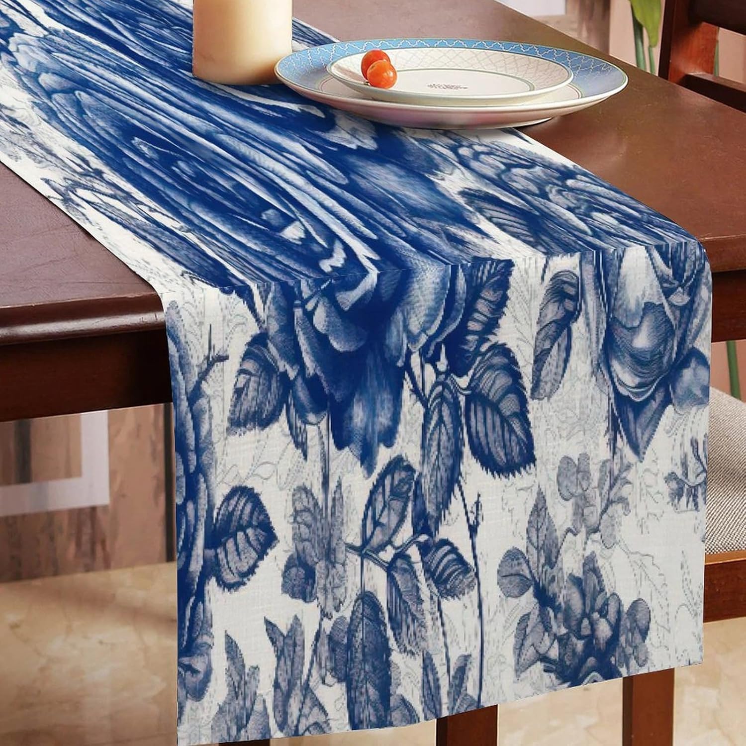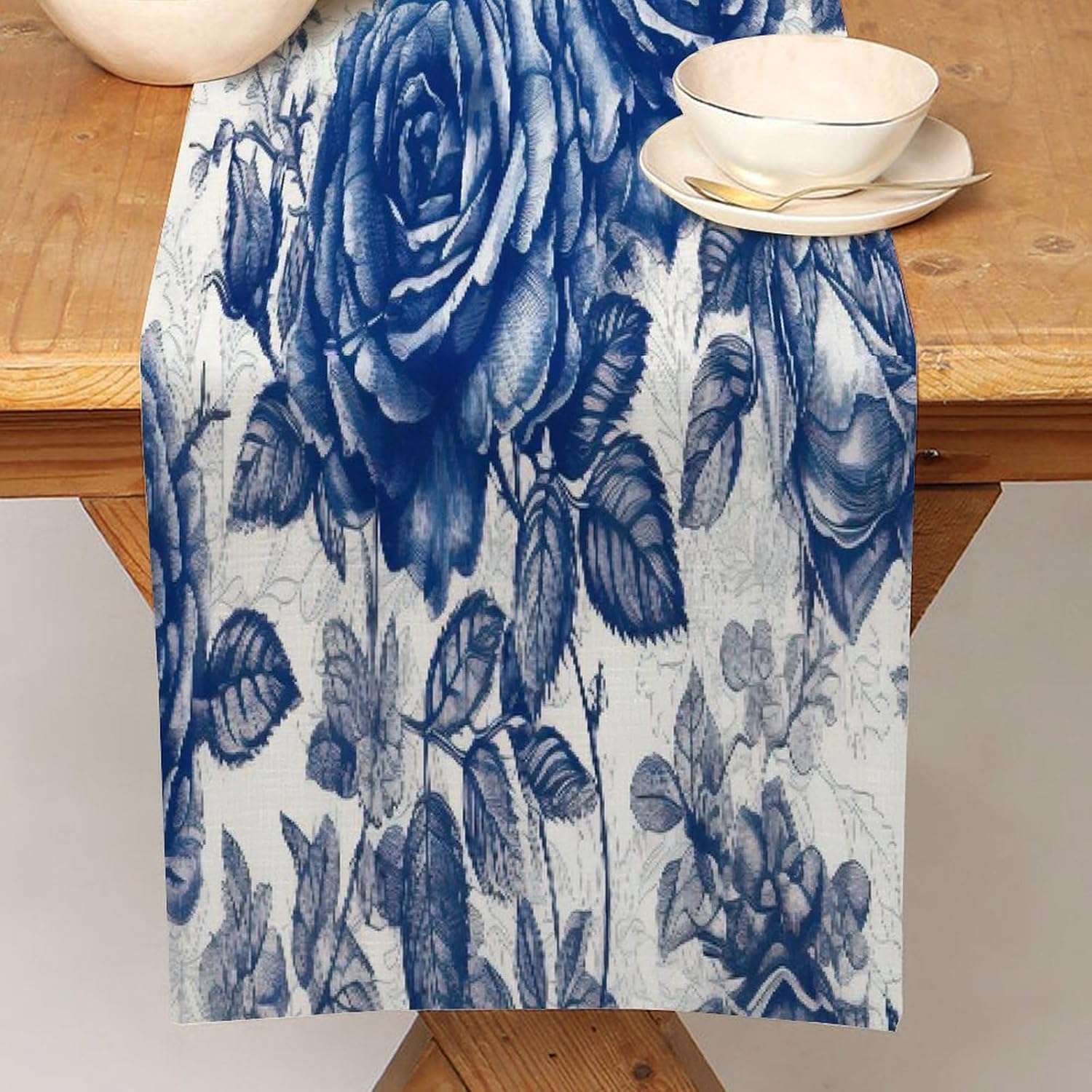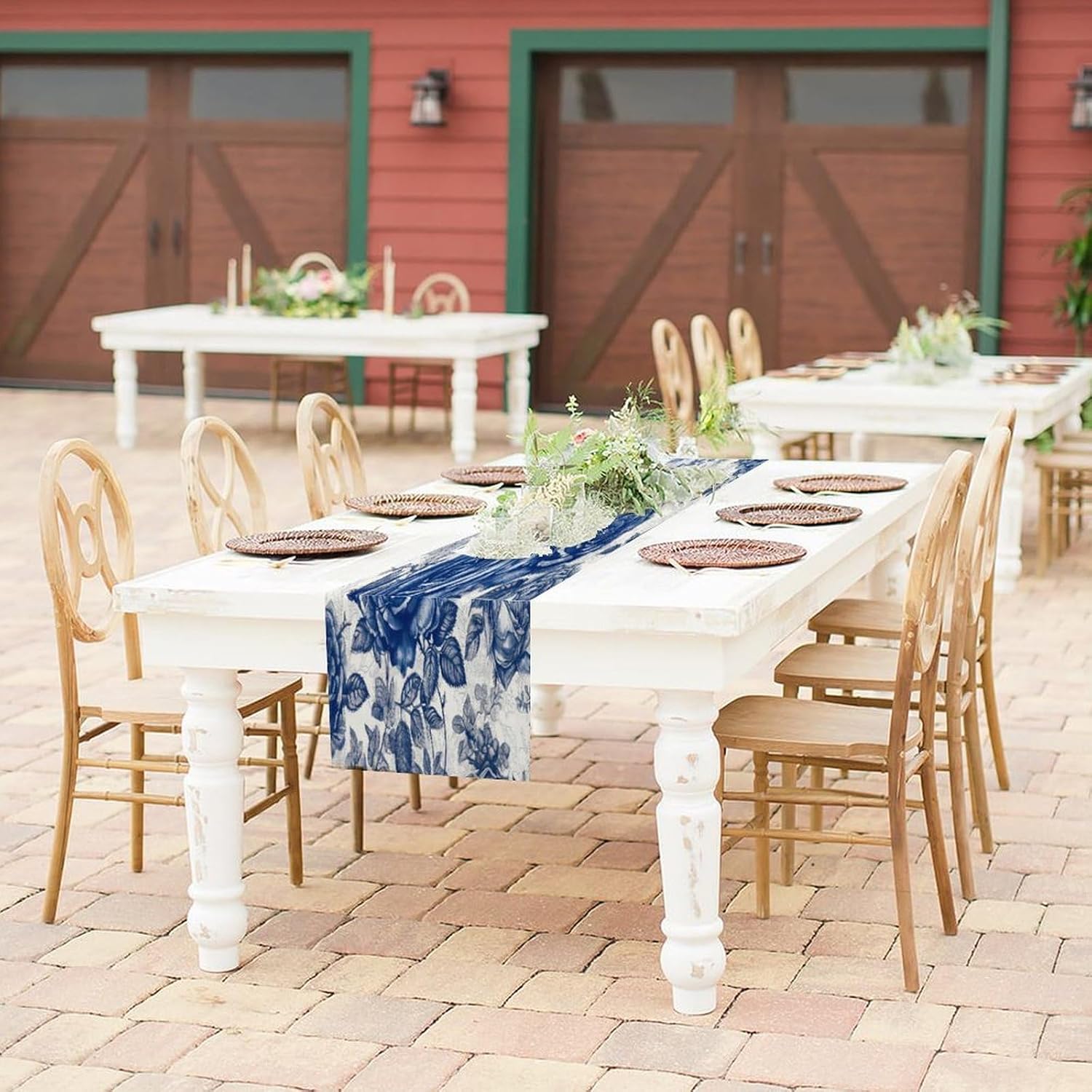 Elegante runner da tavola in cotone e lino, stile retrò, motivo floreale, 35 x 183 cm, decorazione per sala da pranzo, vacanze, casa, giardino, matrimoni, ricevimenti