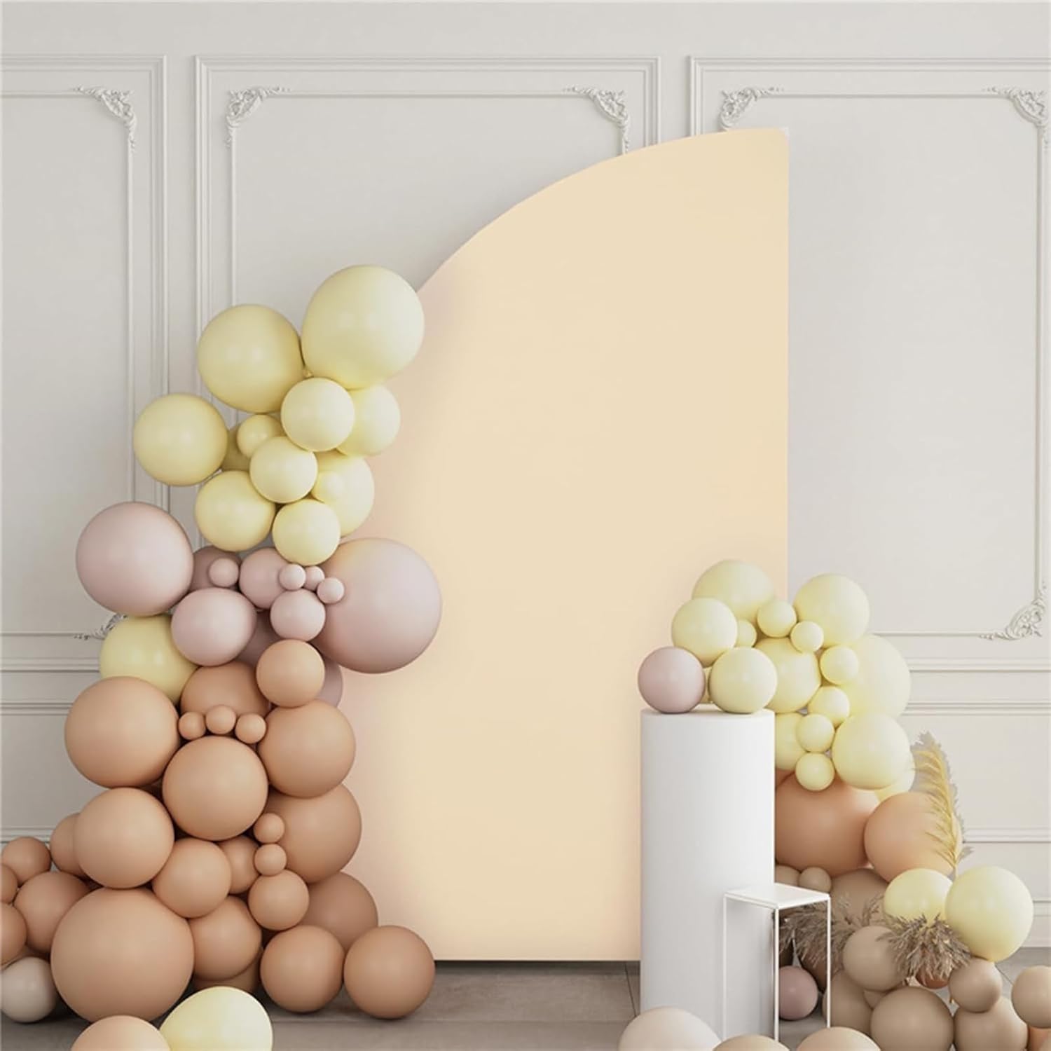 Questa copertura a mezzo lenzuolo è caratterizzata da un tessuto resistente alle pieghe che garantisce un aspetto professionale durante tutto l'evento. Adatto a organizzatori di eventi, decoratori e coppie che desiderano aggiungere un tocco di raffinatezza ai propri matrimoni, banchetti e feste di compleanno. Adatte sia per cerimonie interne che esterne, queste coperture arcuate in spandex forniscono un punto focale elegante. e rimuovi queste coperture per semiarco nuziali come soluzione per aumentare l'atmosfera di ogni occasione di festival.