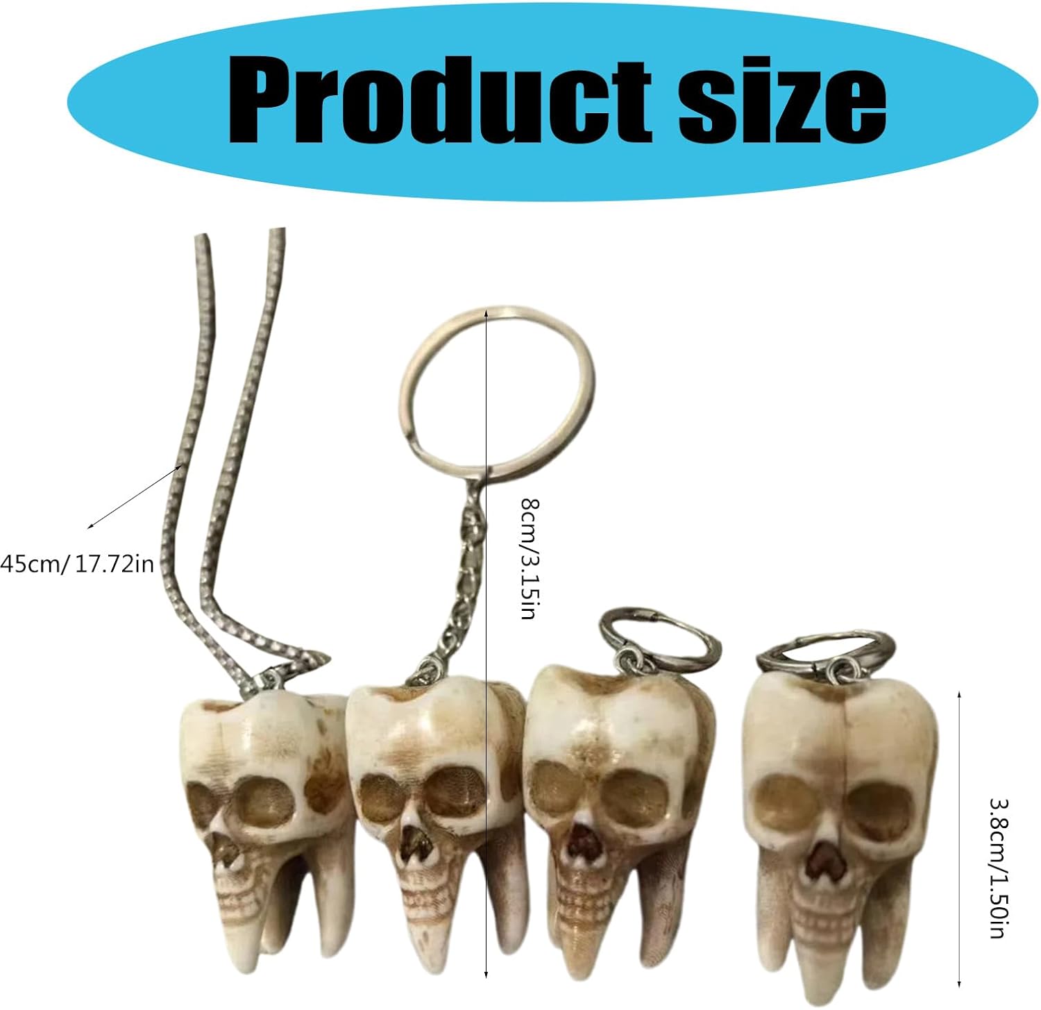 Elegante set di gioielli a tema teschio accessori per Halloween collana pendente orecchini adatti per uomo e donna Caratteristiche: Scatena il tuo interiore con il nostro set di gioielli teschio, dichiarazione di individualità e stili alla moda. Realizzato in resina, questo squisito set presenta collana a tema teschio dal design intricato e orecchini che resistono allo sbiadimento per una lunga durata. Adatto per uomini e donne che abbraccia teestetica, appassionati di roccia, frequentatori di feste e artisti che cercano di accentuare il loro unico. Adatto per varie occasioni, tra cui feste, festival musicali, eventi di Halloween e serate in discoteca, questo set ti farà sicuramente risaltare con aria di mistero. Migliora il tuo gioco di accessori con questo versatile set di gioielli teschio, trasformando qualsiasi vestito in un antipasto di conversazione e mostrando il tuo gusto distinto nella moda. Specifiche tecniche: Struttura: resina. Dimensioni: come da immagine. La confezione include: 1 collana. 1 portachiavi. 1 paio di orecchini. Nota: Considerare un margine di errore di 1-2 cm dovuto alla misurazione manuale. A causa delle differenze tra i diversi monitor, l'immagine potrebbe non riflettere il colore reale dell'articolo.