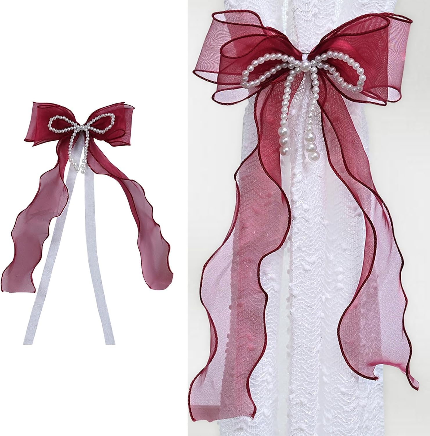 ♬ Ravviva l'arredamento della tua casa con questi eleganti fermacravatte con fiocchi. Decorati con perle scintillanti ed eleganti, aggiungono un tocco di eleganza senza tempo a camere da letto, uffici o luoghi di nozze. ♬ Realizzati in poliestere di alta qualità e impreziositi con perle finte, questi supporti combinano una struttura solida con dettagli raffinati per mantenere la forma e resistere allo sbiadimento. ♬ Ideale per proprietari di case, organizzatori di eventi e interior designer che cercano modi versatili ed eleganti per valorizzare le finestre o decorare lo spazio abitativo. ♬ Perfetto per incorniciare le finestre della sala da pranzo, evidenziare le tende della camera da letto o valorizzare le decorazioni nuziali con la loro estetica romantica ed eclettica. ♬ Trasforma le normali tende in una dichiarazione con questi fermacravatta, combinando funzionalità e lusso per creare interni invitanti ed eleganti per una festa speciale.