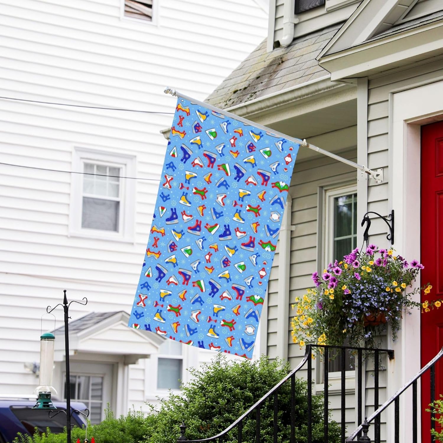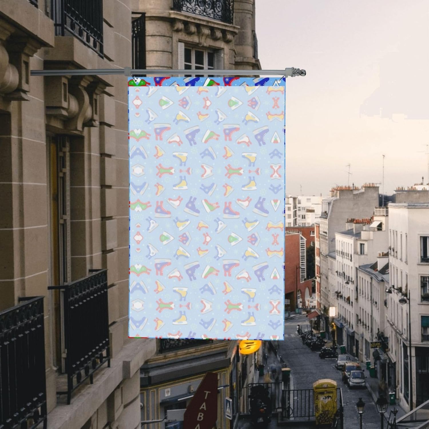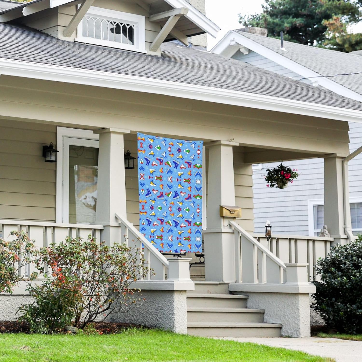 Dimensioni generose: con una larghezza di 90 cm e un'altezza di 150 cm, questo striscione per feste offre un'ampia area espositiva Materiale: questa bandiera è realizzata in tessuto di poliestere, garantendo durata, flessibilità e un design leggero che sventola anche con la minima brezza Multiuso: perfetta per decorazioni esterne, questa bandiera può essere appesa nel tuo giardino, prato, balcone, corridoio o alle feste. Aggiunge un elemento festoso e accattivante a ogni occasione, creando un'atmosfera felice e festosa. Installazione semplice: il banner è dotato di occhielli in metallo che lo rendono facile da appendere. Il tessuto leggero e svolazzante cattura la brezza e aggiunge un tocco dinamico alla tua decorazione esterna. Mostra con orgoglio il tuo banner ovunque con facilità. Istruzioni per la cura: questo banner può essere lavato a mano o lavato delicatamente in lavatrice. Evitare lo sbiancamento e la stiratura ad alte temperature per mantenere i colori vivaci e l'integrità del tessuto
