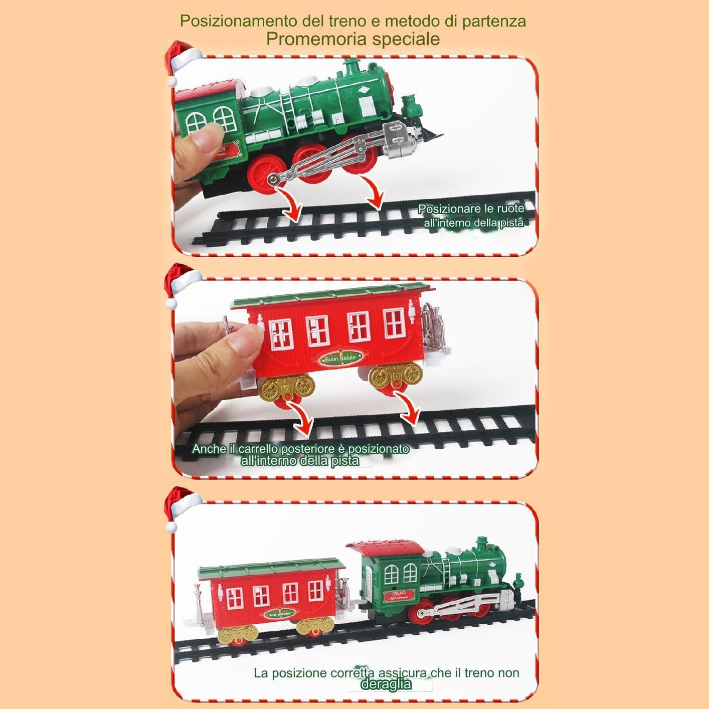 Design a Misura di Bambino: Realizzato con materiali sicuri ed ecologici, il nostro su Rotaie Natalizio assicura stabilità e durabilità, fornendo ai bambini un divertimento innocuo durante le vacanze natalizie e donando ai genitori totale serenità. La progettazione child-friendly utilizza materiali atossici e resistenti, ideali per giochi vivaci, mentre la struttura stabile previene cadute. I bambini esplorano la magia del Natale in sicurezza, e i genitori godono di momenti spensierati, gr Costruzione Modello Interattivo: Il Christmas Track Train non è solo una decorazione natalizia; questo giocattolo educativo permette ai bambini di assemblare un modello divertendosi e imparando. L'attività pratica migliora la coordinazione occhio-mano e le capacità di problem-solving, favorendo la crescita e lo sviluppo infantile. Un'esperienza coinvolgente che unisce gioco e apprendimento per stimolare la creatività e le abilità cognitive in modo naturale e piacevole. Guida Elettrica Innovativa: Adotta una tecnologia di guida elettrica all'avanguardia che fornisce un'esperienza di guida scorrevole e stabile per i bambini. I piccoli possono operare senza sforzo il natalizio sul binario, un'avventura piena di gioia ed emozione. La facilità di controllo e l'affidabilità del motore elettrico assicurano che ogni sessione di gioco sia divertente e memorabile, promuovendo un'esperienza natalizia indimenticabile per tutta la famiglia. Doppio Divertimento: Il audio intelligente integrato del Binario Natalizio crea effetti sonori dinamici quando il è in movimento. Questo offre un'esperienza di gioco immersiva per i bambini, raddoppiando il divertimento con fischi e suoni del . I suoni realistici e i fischi rendono ogni sessione di gioco emozionante e memorabile, coinvolgendo i piccoli in attività festive e gioiose. Un Regalo Meraviglioso: Crea ricordi indimenticabili delle feste per i tuoi bambini con il Christmas Track Train. Sia che sia Natale, la Festa dei Bambini o il loro compleanno, questo è il regalo che porta gioia ed eccitazione a qualsiasi occasione. Ideale per sorprendere e divertire i più piccoli, garantendo momenti di felicità durante le celebrazioni e oltre, con un tocco magico natalizio.