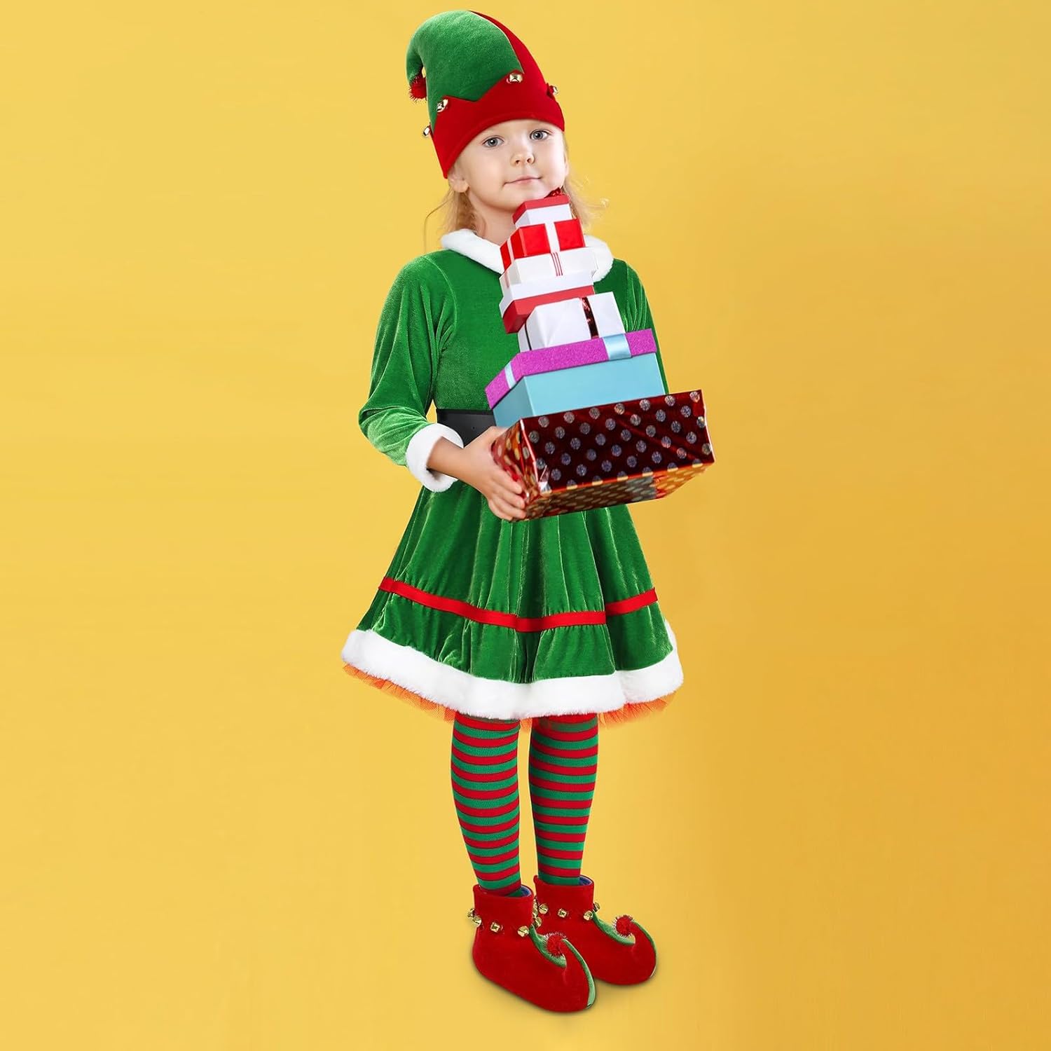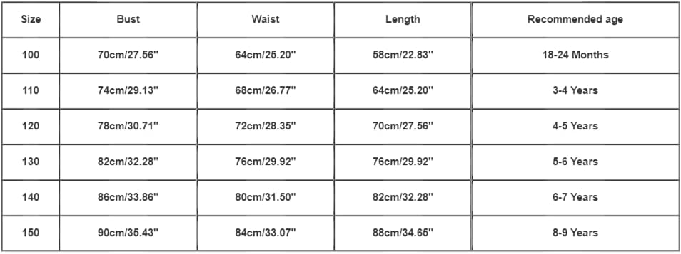 Materiale di qualità: Il nostro cappello, le scarpe e gli abiti sono realizzati in morbido velluto, ovvero 90% poliestere e 10% spandex, e il materiale in flanella è molto pregiato, spesso e comodo da indossare; il peluche bianco è realizzato in morbida fibra artificiale, non sbiadisce o si deforma facilmente, si consiglia di lavare con acqua fredda, non candeggiare, può essere lavato ripetutamente per un uso prolungato. Design elegante: il nostro abito natalizio in velluto adotta il design del colletto bianco a forma di peluche, la bellezza infantile della ragazza, la cintura nera a vita alta con e un tocco giocoso per attirare gli sguardi; il colore principale adotta il classico verde natalizio, con pizzo rosso sulla gonna, delicato e; inoltre, i calzini sopra il ginocchio rossi e verdi evidenziano il costume, creando la forte atmosfera delle vacanze natalizie! Occasione di utilizzo: molto adatto per Natale, Capodanno, feste di cosplay, spettacoli teatrali, feste di Halloween e feste di Pasqua, creando un'immagine e rendendo la vacanza interessante. Materiale: cotone Taglia: 100 Busto: 70 cm/27,56'' Vita: 64 cm/25,20'' Lunghezza: 58 cm/22,83'' Età consigliata: 18-24 mesi Taglia: 110 Busto: 74 cm/29,13'' Vita: 68 cm/26,77'' Lunghezza: 64 cm/25,20'' Età consigliata: 3-4 anni Anni Taglia: 120 Busto: 78 cm/30,71''Vita: 72 cm/28,35''Lunghezza: 70 cm/27,56'' Età consigliata: 4-5 anni Taglia: 130 Busto: 82 cm/32,28''Vita: 76 cm/29,92''Lunghezza: 76 cm/29,92'' Età consigliata: 5-6 anni Taglia: 140 Busto: 86 cm/33,86''Vita: 80 cm/31,50''Lunghezza: 82 cm/32,28'' Età consigliata: 6-7 anni Taglia: 150 Busto: 90 cm/35,43''Vita: 84 cm/33,07''Lunghezza: 88 cm/34,65'' Età consigliata: 8-9 anni