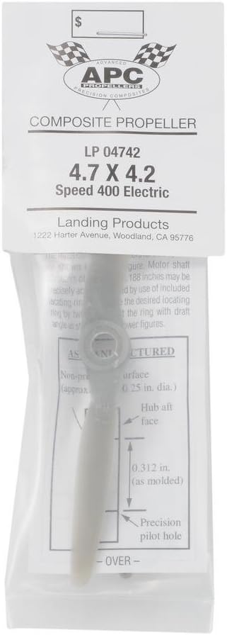 Pevná vrtule APC 4.7x4.2 pro RC modely letadel s elektromotorem. Larghezza massima 119 mm, altezza 107 mm. Pro modely letadel poháněné elettromotorem.