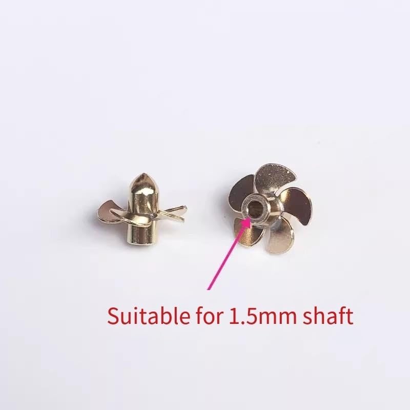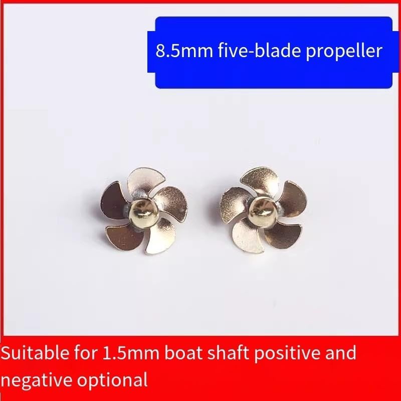 Precision RC Boat Fit: elica in ottone a cinque pale da 8,5 mm di diametro con foro da 1,5 mm, progettata for modelli di barche radiocomandate, che garantisce un perfetto allineamento con i sistemi di alimentazione standard. Resistenza della saldatura in ottone: realizzata in ottone saldato for resistere all'usura e garantire una trasmissione di potenza duratura in ambienti acquatici. Miglioramento della spinta a cinque pale: la maggiore superficie delle pale ottimizza il contatto con l'acqua, garantendo una spinta più forte for una navigazione più veloce e stabile. Precisione su microscala: diametro esterno di 8,5 mm, mozzo di 3 mm, altezza di 7,5 mm e foro di 1,5 mm for un trasferimento di potenza efficiente nei modelli di imbarcazioni compatte. Kit a doppia rotazione: include un'elica avanti (sinistra) e una indietro (destra), soddisfacendo le diverse esigenze di controllo degli appassionati del fai da te.