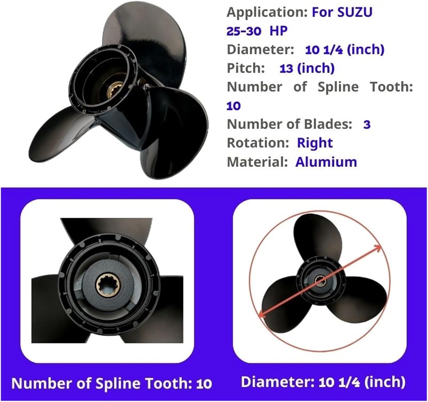 Elica fuoribordo 10 1/4X13 Motore per barche Vite in lega di alluminio Motore marino 10 Spline per 20 HP 25 HP 30 HP