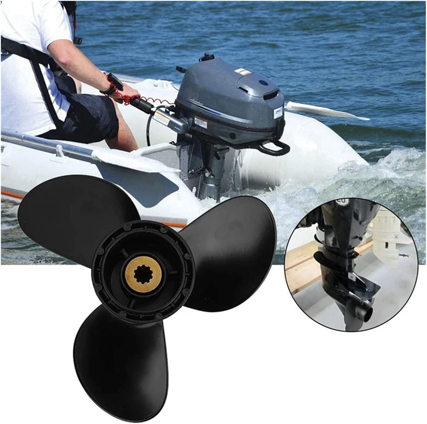 Realizzato in lega di alluminio, finitura resistente. Aperture di ventilazione abbinate per un rapido Holeshot. Migliorare la manovrabilità e il sollevamento della barca. Buon design, alta qualità e buone prestazioni, eliche leggere. Numero di denti della scanalatura: 10