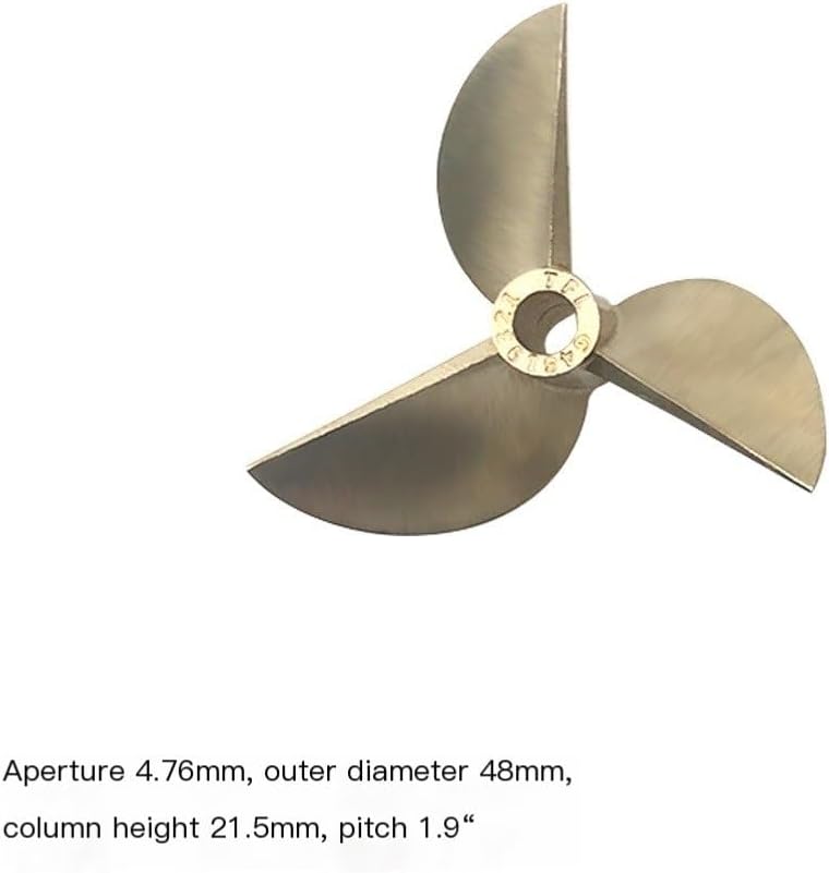 【Lega di rame di alta qualità】 – Durevole e resistente all'usura for prestazioni di lunga durata. 【Design bilanciato di precisione】 – Garantisce una trasmissione di potenza fluida e vibrazioni ridotte. 【Specifiche compatibili】 – Il foro dell'albero da 4,76 mm e il diametro di 48 mm si adattano alla maggior parte dei sistemi di propulsione delle imbarcazioni modello. 【Design efficiente a 3 pale】 – Fornisce una spinta bilanciata for un funzionamento stabile e potente. 【Installazione semplice】 – Il design semplice consente una rapida installazione senza strumenti specializzati.