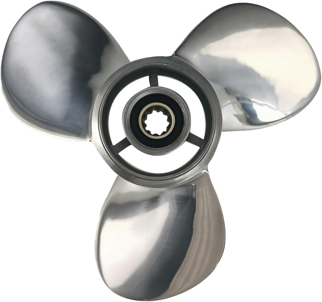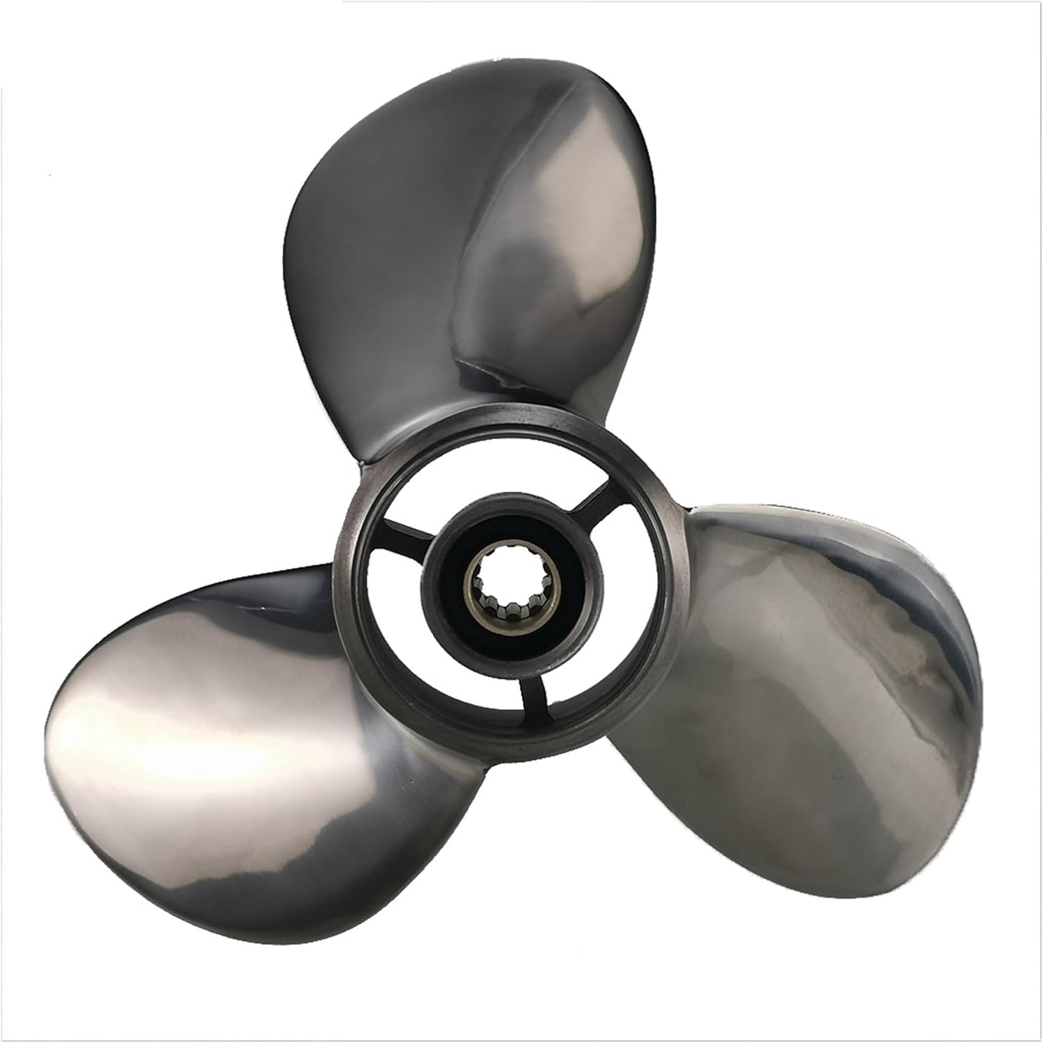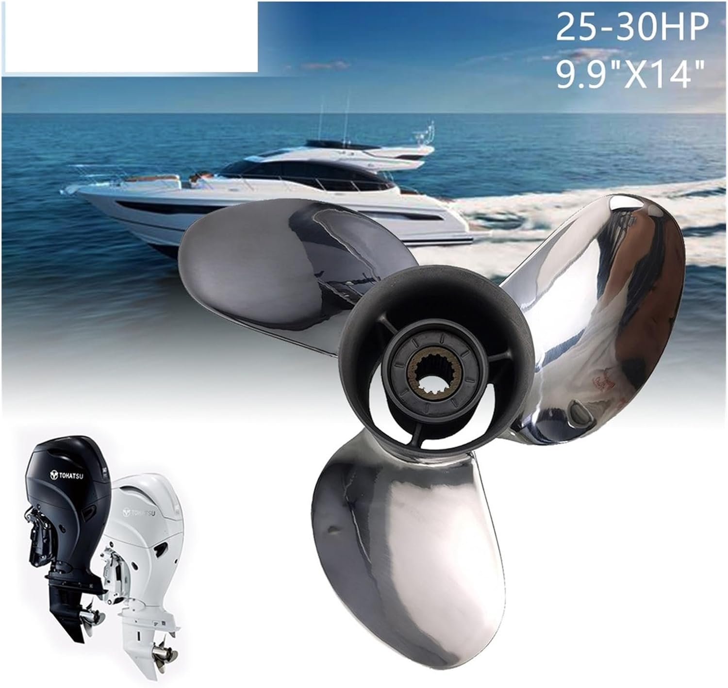 Elica per barca, 25 HP, 30 HP, elica 9,9 x 14 per motori fuoribordo, scanalatura a 10 denti, acciaio inossidabile