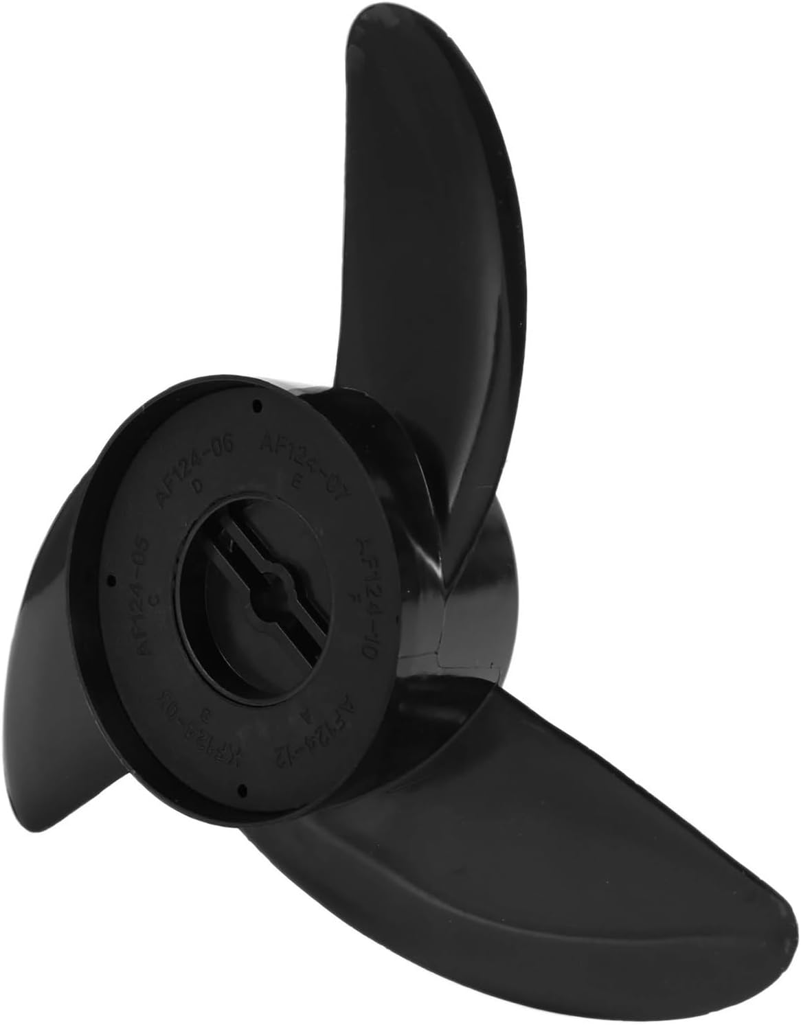 Elica a tre pale ad alta resistenza in plastica: durevole e facile da usare. Tritura molto bene i detriti. Aumenta in modo efficiente la velocità senza rimanere intrappolato in detriti, acque poco profonde o tife. Include un dado di montaggio e una spina di sicurezza per cambiare l'elica e il diametro del foro interno di montaggio: 1 cm