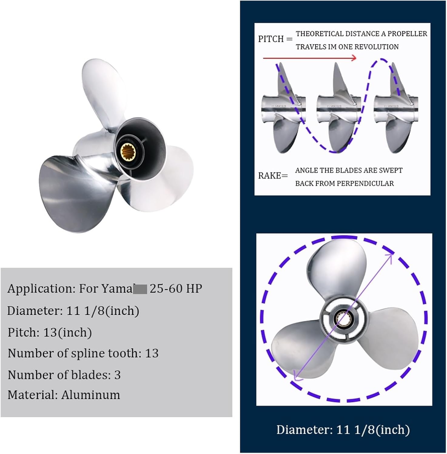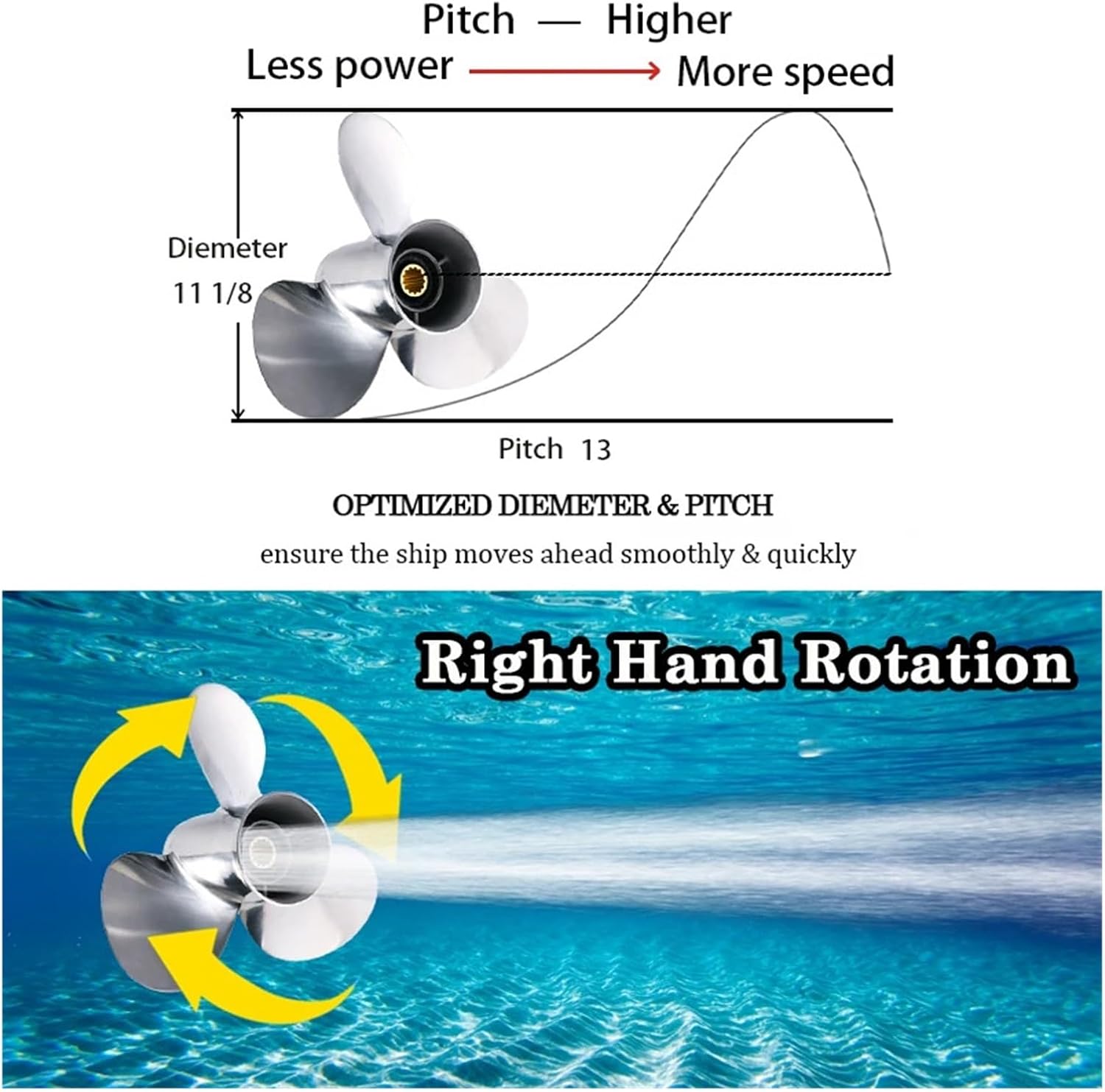 Elica per barca per 25 HP, 30 HP, 40 HP, 50 HP, 55 HP, 60 HP, motore fuoribordo, vite 11 1/8 x 13, motore per barca, elica in acciaio inossidabile 13