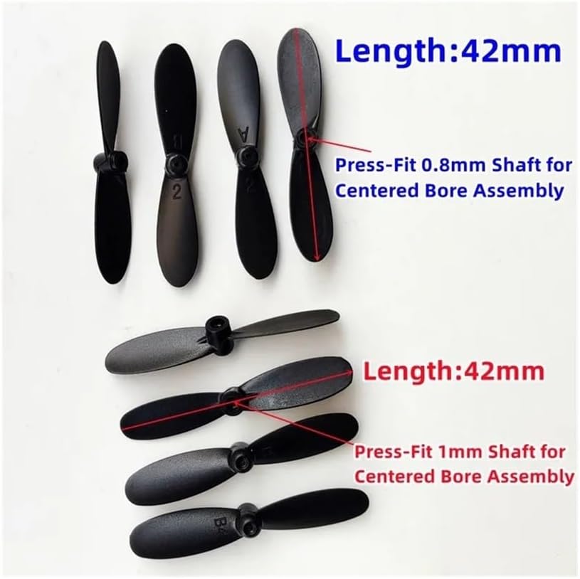 Specifiche miniaturizzate: lame positive e negative da 42 mm di diametro e 1,0 mm di spessore, conformi ai requisiti del motore cavo 716. Accessori di volo: gruppo propulsore da 4,2 cm, accessori adatti for alianti ad ala fissa e quadricotteri. Design leggero: realizzato in materiali compositi in fibra di carbonio, è leggero, riduce il carico sul motore e aumenta la durata del volo. Sostituzione rapida: installazione a scatto, senza bisogno di attrezzi, sostituzione completa in 3 secondi, manutenzione rapida tra un volo e l'altro. Adattamento universale: compatibile con i modelli più diffusi, con marcature chiare per propeller positiva e inversa per evitare errori di installazione.