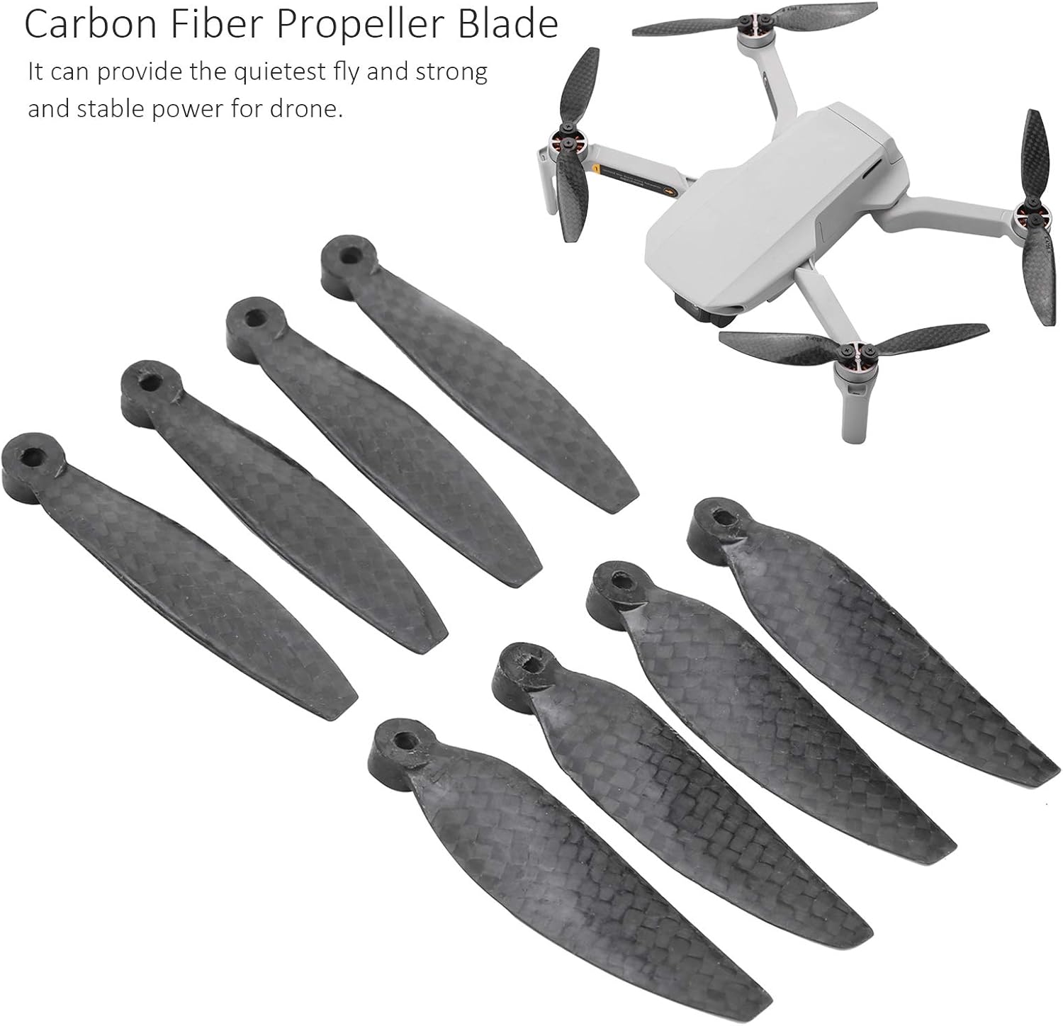 Buon bilanciamento e alta efficienza, che possono migliorare l'affidabilità e la stabilità durante il volo. L' fornisce il volo più silenzioso e una spinta potente e stabile per il drone. Progettato per Mavic Mini 2, può fornire il volo più silenzioso e una potenza forte e stabile per il drone. Realizzato in fibra di carbonio di alta qualità, leggero, resistente agli urti, durevole. Le pale in fibra di carbonio sono principalmente durevoli e ad alta rigidità, fornendo la massima forza di trazione per il drone.