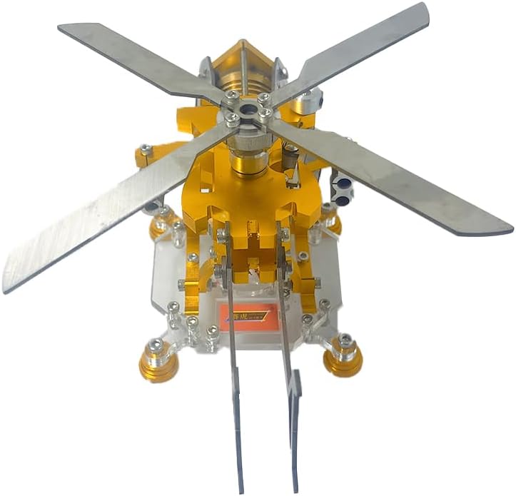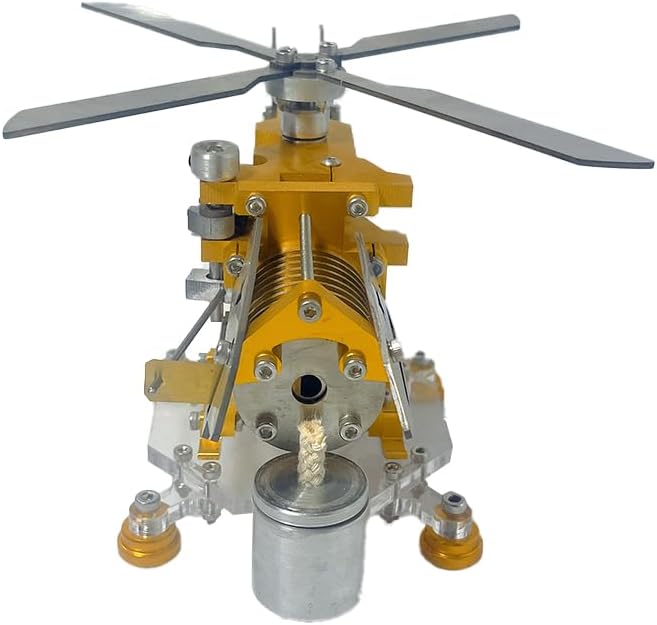 Innovativo design ispirato all'elicottero: mostra una somiglianza sorprendente con gli elicotteri militari ed è dotato di un portararazzi e un lanciarazzi, che evidenzia un'estetica robusta e dettagliata Squisito sistema di raffreddamento: con raffreddamento ad aria basato su rotore, che combina funzionalità e stile per creare una presentazione visivamente impressionante Materiali e texture di alta qualità: realizzato in lega di alluminio e acciaio inossidabile, con una lussuosa finitura dorato-argento che unisce eleganza e durata e aumenta l'attrattiva tattile e visiva Modernità sottile e facile da usare: progettato per un facile montaggio e messa in servizio, con un funzionamento regolare nell'intervallo di velocità di 300-1000 giri/min e un tempo di funzionamento continuo di 20 minuti, consentendo un lavoro senza sforzo Educativamente perspicace e decorativo accattivante: eccellente per comprendere la meccanica del motore Stirling attraverso l'interazione pratica, completata da una lavorazione artigianale di alta qualità e un design estetico adatto alla mostra