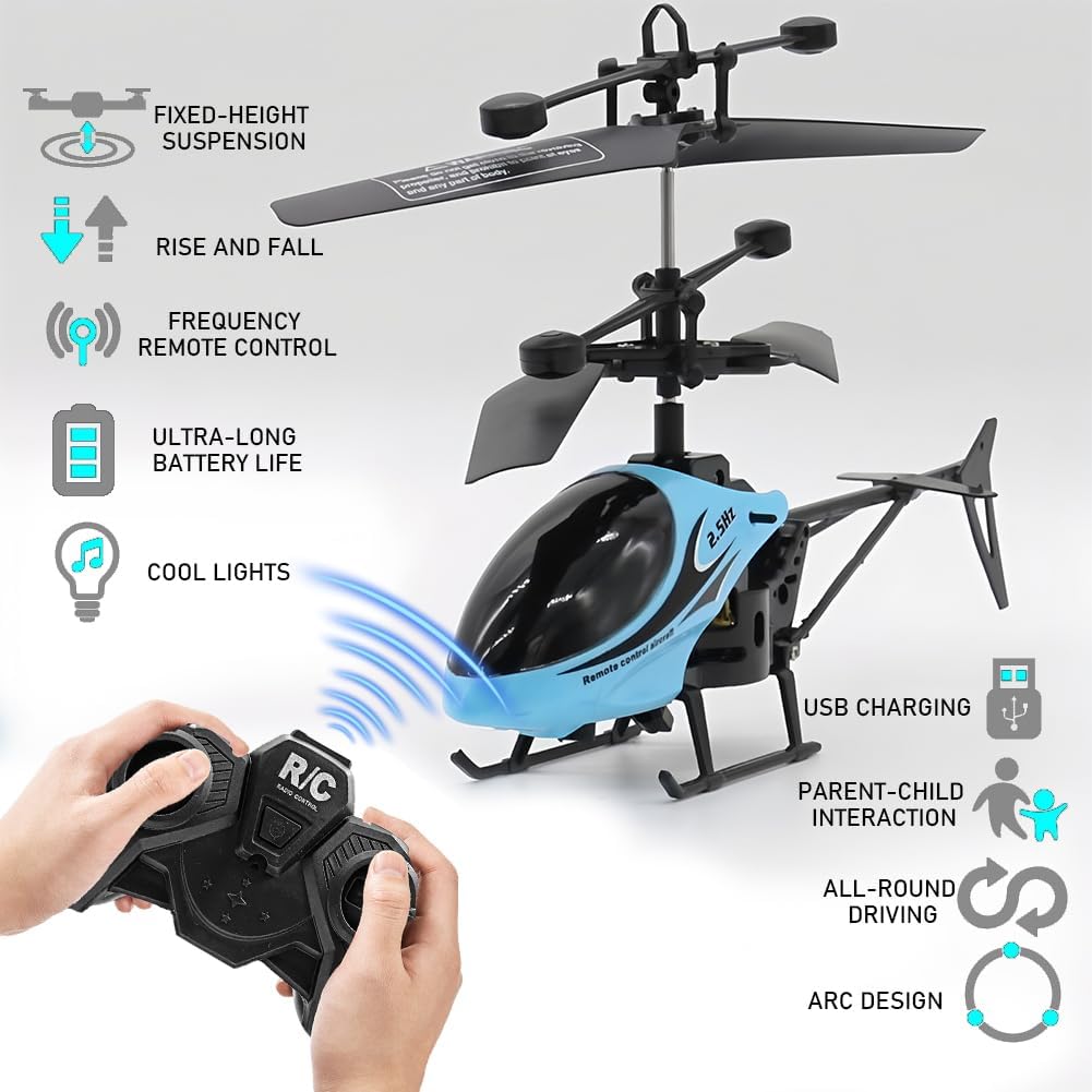 【Facile da controllare e mobilità】 Dotato di fantastici gusci di elicottero, attirerà l'attenzione del tuo bambino. Il pulsante di decollo / atterraggio con un solo tasto consente all'elicottero di decollare rapidamente entro 2 secondi. Il controllo dell'assetto può correggere la deriva e l'inclinazione. È facile da usare per bambini e principianti e goditi il divertimento di guidare al chiuso (assicurati di giocare in un posto senza vento). Le eliche ruotano a una velocità ragionevole, proteggono l'arredamento della tua casa. Grande giocattolo volante per bambini e bambini nel cuore. 【Mantenimento dell'altitudine e 2 canali】 Questo elicottero telecomandato si libra a una certa altezza con l'aiuto di una tecnologia avanzata di pressione dell'aria dopo il decollo. Dotato di un giroscopio incorporato e utilizzando i joystick di salita, discesa, sinistra, destra, avanti e indietro, l'elicottero si muove più flessibile e stabile. 【LEGGERO, RESISTENTE E ANTICOLLISIONE】 Questo creativo elicottero RC a induzione 2.4G è realizzato in materiale leggero e super duro. Super resistente agli urti durante il volo. Può volare a 2 velocità, alta e bassa. Il raggio di controllo è di circa 45-50 metri. Tecnologia straordinaria nel palmo della tua mano e per più divertimento nei giochi di volo 【Divertimento per tutte le età e occasioni】 Questo modello è un giocattolo ricreativo ideale per principianti, avanzati e professionisti. È facile da capire anche con così tante funzioni. Sia i bambini che gli adulti lo adoreranno di sicuro. Questo elicottero è il regalo di compleanno, festa o Natale che ogni ragazzo, ragazza e amante degli elicotteri RC vuole ricevere! 【Avviso】 1.Deve accendere l'elicottero in un primo momento, quindi girare il telecomando o non può corrispondere con successo. 2. L'aereo telecomandato deve essere giocato solo al chiuso; 3. Se devi andare a giocare all'aperto, gioca in un luogo aperto e senza vento e la distanza del telecomando non deve essere troppo lontana o troppo alta, altrimenti ci sarà il rischio di perdita