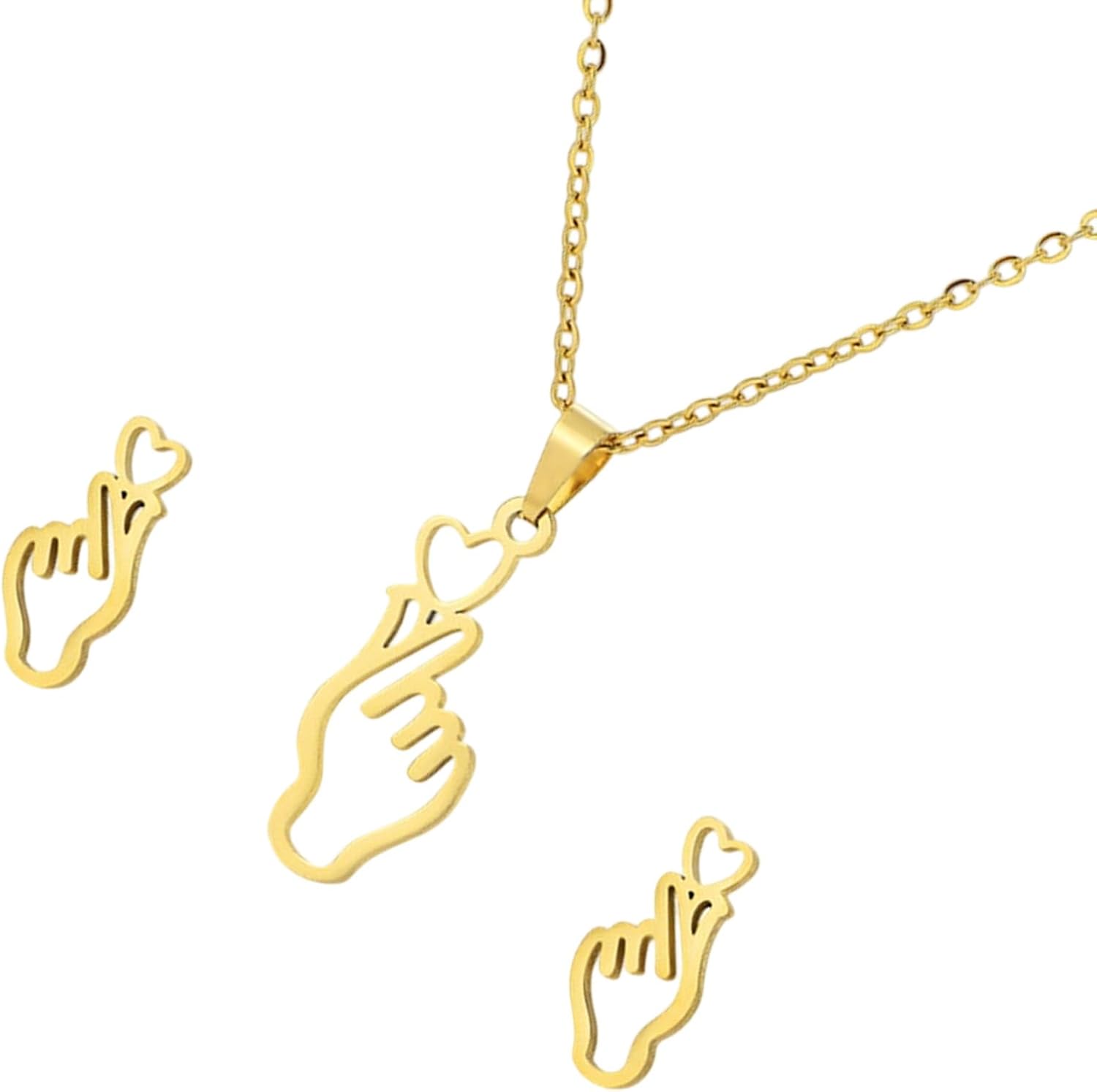 Elish Cuore Gioiello Gestino Collana e stalloni Orecchini Texture in acciaio inossidabile per appassionati presenti Caratteristiche: La collana e orecchini unici del gesto del cuore a mano con un gesto a forma cuore e dettagli intricati, realizzati in acciaio inossidabile per un comfort duraturo. La costruzione in acciaio inossidabile garantisce la durata e finitura mentre design leggero offre usura tutto giorno senza irritazione o offuscata. Adatto a donne audaci e che cercano gioielli versatili per esprimere individualità attraverso accessori moderni e simbolici. Passando senza sforzo dall'usura casual diurna all'evento serale, aggiungendo un sorprendente punto focale agli abiti a feste, date o incontri sul posto lavoro set corrispondente arriva in imballaggi eleganti, a regali come amore celebre, amicizia con fascino artistico. Specifiche: Componente: acciaio inossidabile Lunghezza della collana: 17,72 pollici (45 cm) Colore: oro argento pacchetto include: 1x collana Prigionieri Nota: prega consentire errori 1-2 cm dovuti alla misurazione manuale. A causa delle differenze tra i diversi monitor, l'immagine potrebbe non riflettere colore effettivo dall'articolo.