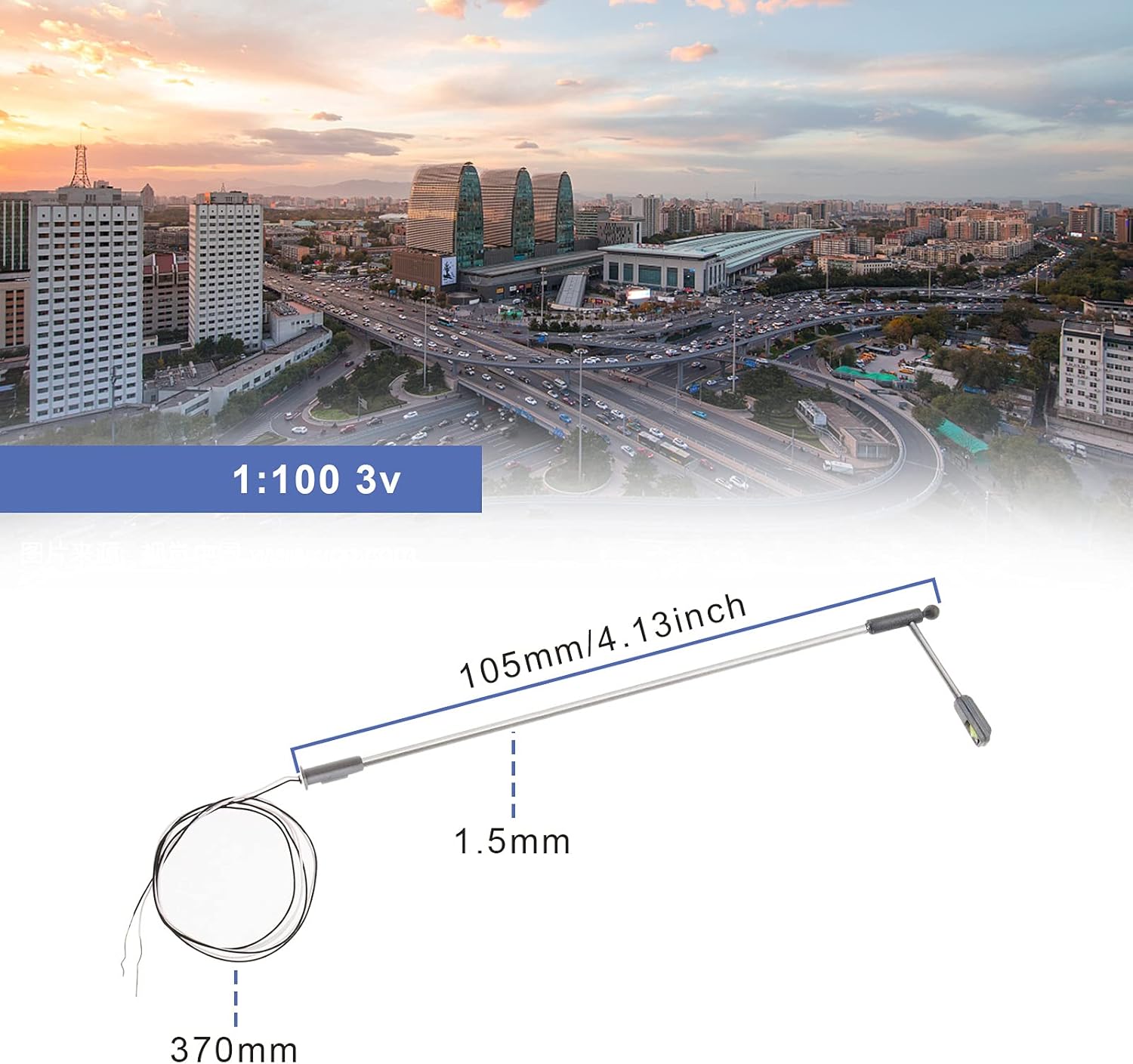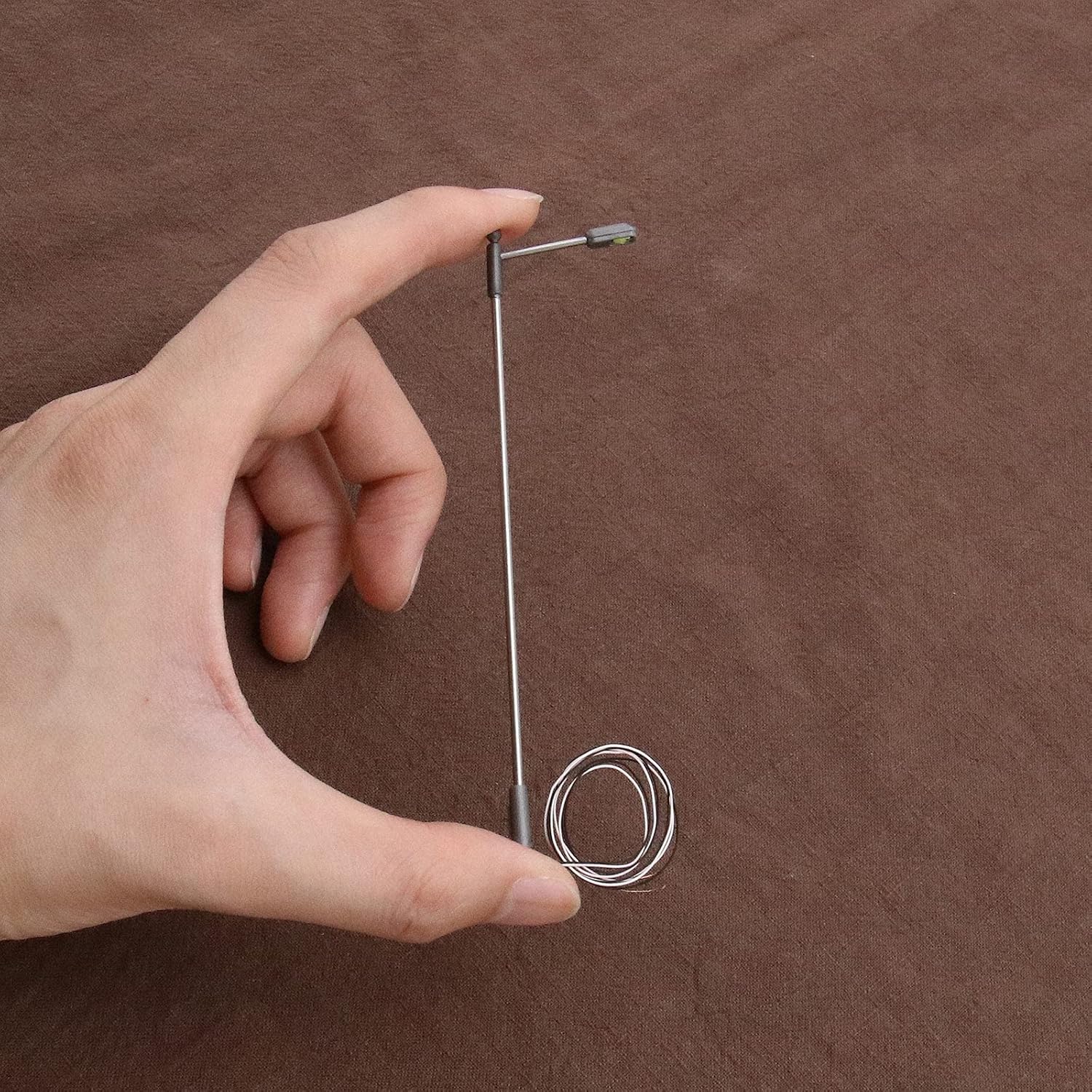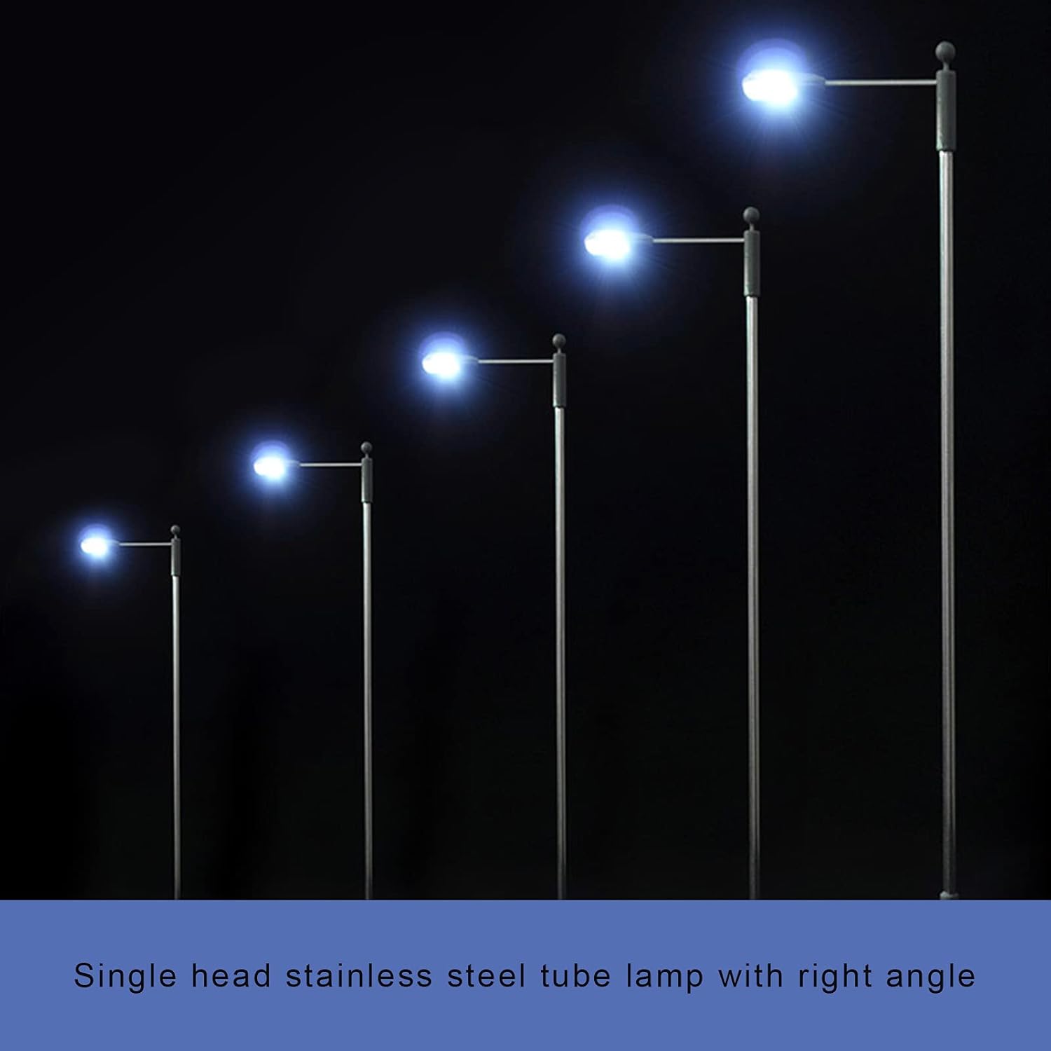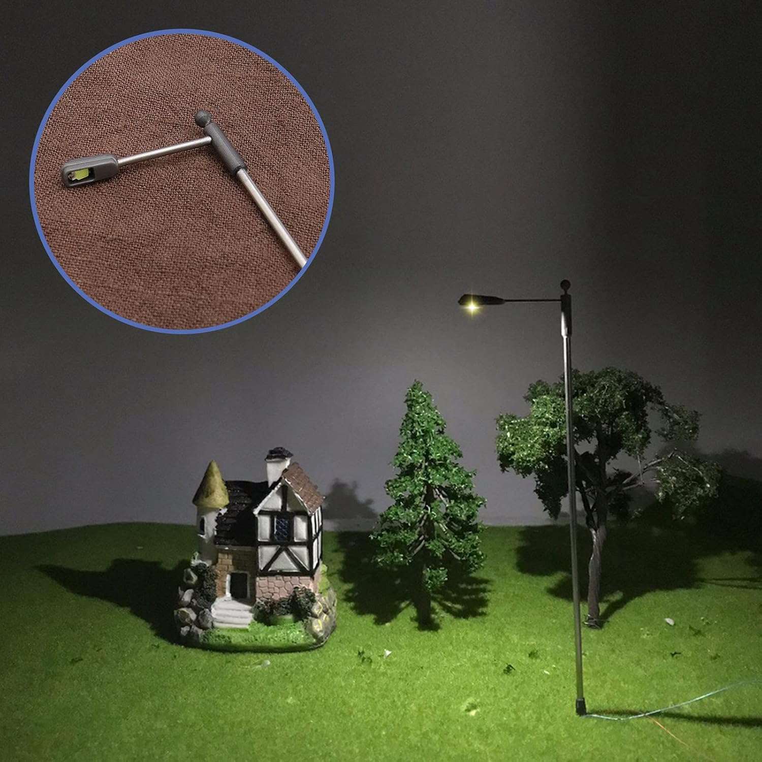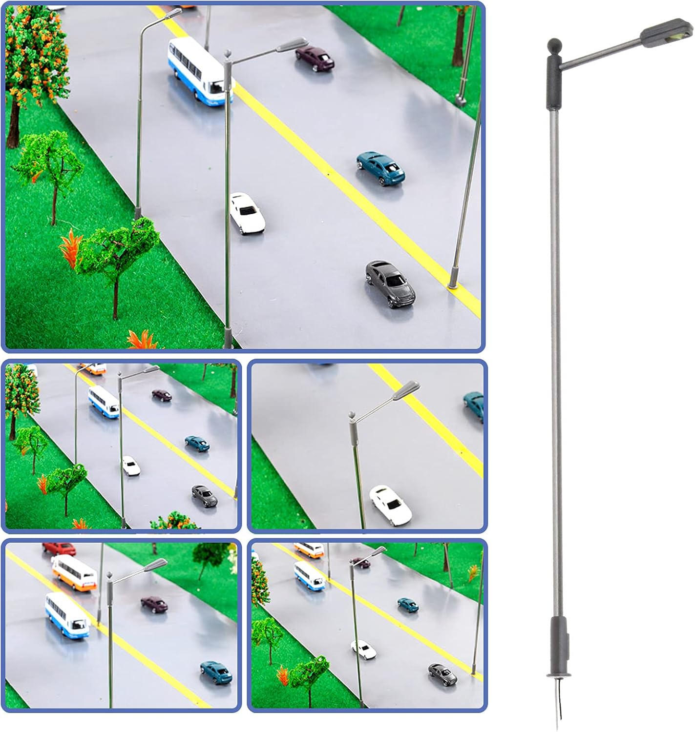 Design: design semplice e classico della lampada, combinato con il modello urbano perfetto. Materiale: realizzato in acciaio inossidabile e plastica, buona consistenza, elevata intensità dei pali, maggiore durata rispetto ai lampioni in plastica, grado di simulazione estremamente elevato. Tensione di funzionamento: fornisce un'emissione luminosa di 3 V, un buon controllo del fascio ed effetti di comunicazione visiva. Applicazione: applicare per la decorazione del giardino, la ferrovia, il layout dell'edificio e il paesaggio del tavolo di sabbia, ecc. Facile da installare: è semplice e conveniente da installare e riparare.