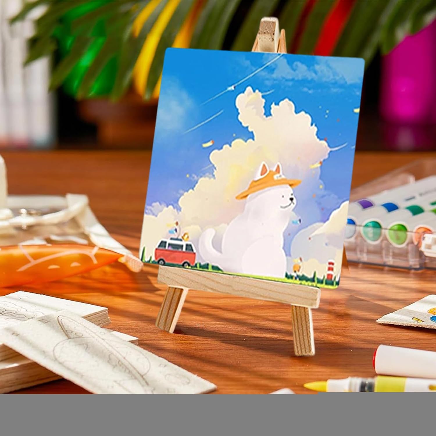 Pittura Sicura e Colorata: Colori vivaci in vernici acriliche lavabili con formula sicura per l'infanzia, permettono pulizia rapida con acqua per esplorazione creativa senza preoccupazioni Sviluppo Artistico: Set tela e colori consigliato per età 3+ che sviluppa capacità motorie attraverso attività creative, ispirando l'espressione personale dei bambini con esperienze pittoriche pratiche e coinvolgenti per giovani artisti. Regalo Emozionante: Vivete esperienze artistiche creando decorazioni murali uniche, rafforzando i legami familiari con questo set completo che diventa un regalo creativo e personale Kit Creativo Portatile: Grazie al design compatto e alla custodia inclusa, è per viaggi, consentendo espressione artistica senza interruzioni durante tutte le avventure creative Pacchetto creativo totale: Include 10 mini e cavalletto in legno per espressione artistica immediata, ideale per esplorare tecniche pittoriche diverse