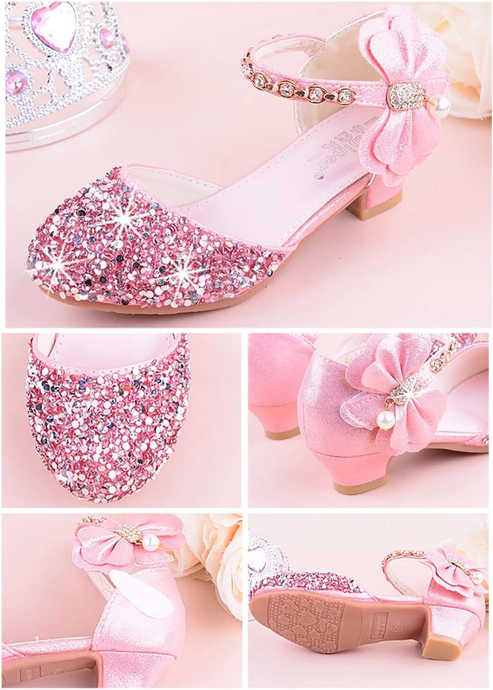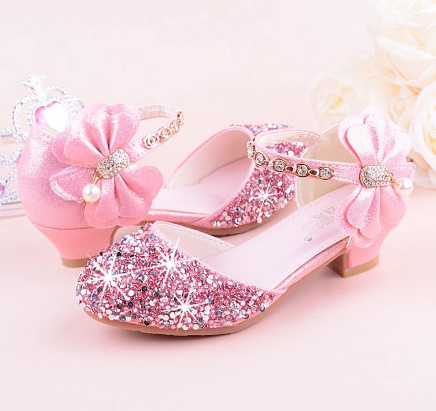 Emin Scarpe da principessa per ragazze Scarpe glitterate per bambini Sandali con tacco alto Scarpe da sposa Scarpe da balletto Festa di compleanno Halloween Natale Carnevale Accessori per costumi