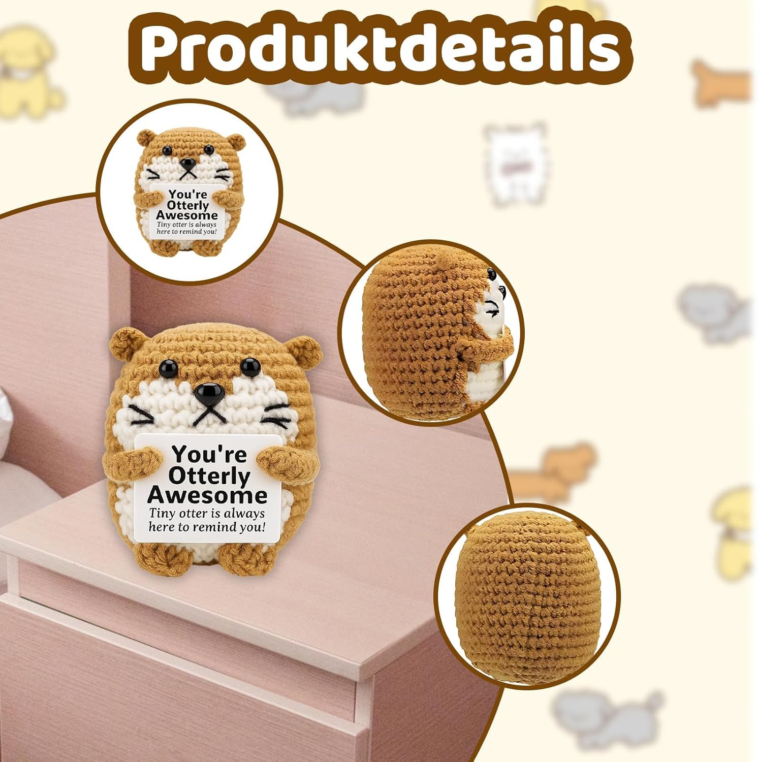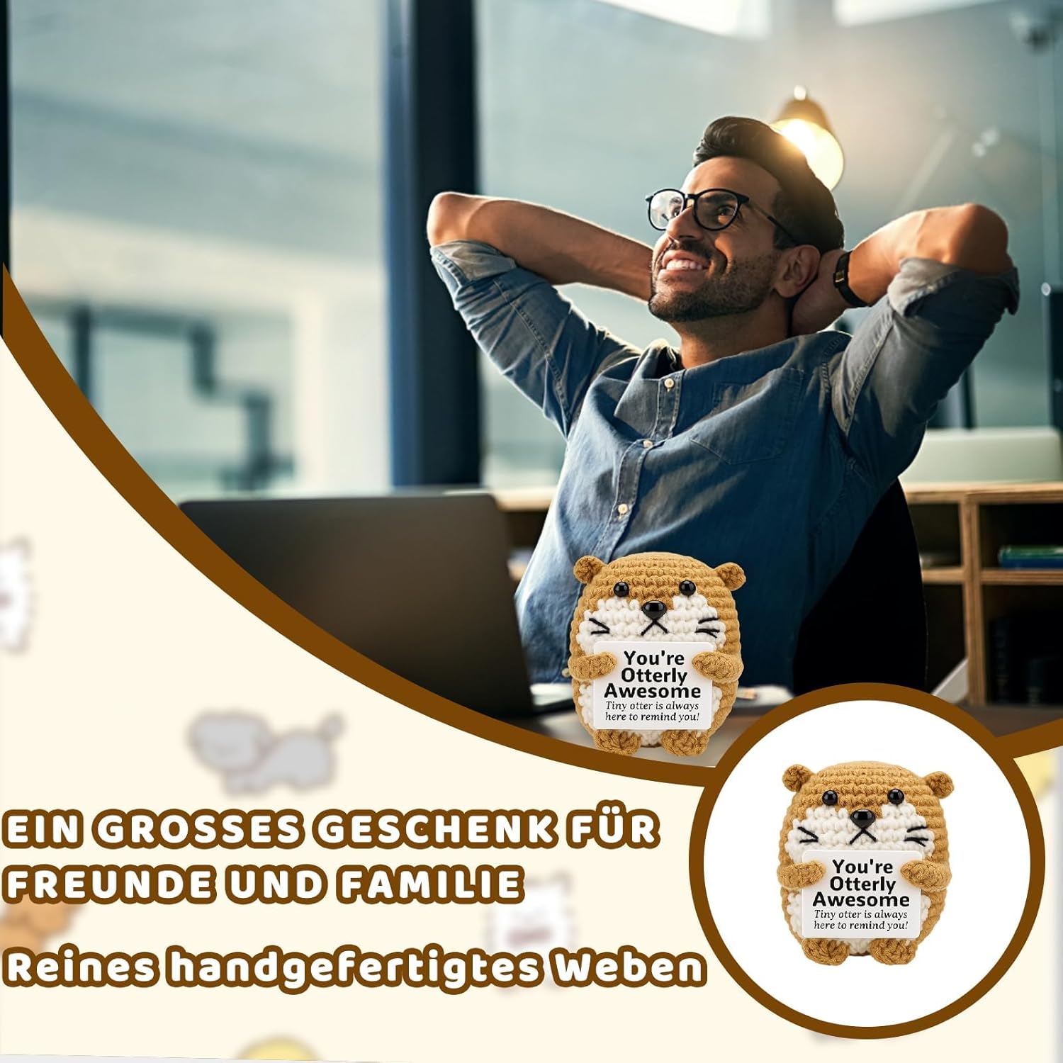 Supporto emotivo: la simpatica lontra in materiale di alta qualità offre conforto e supporto emotivo; la consistenza morbida e il design accattivante lo rendono il compagno perfetto per le giornate stressanti; ideale per giovani adulti e professionisti che cercano relax Messaggio positivo: ogni lontra viene fornita con una carta incoraggiante che diffonde energia positiva; Il messaggio commovente aiuta a sollevare l'umore e dare forza nei momenti difficili; Un piccolo segno di apprezzamento per le persone speciali nella vita Lavorazione di alta qualità: peluche con supporto emotivo, realizzato a mano con cura per un piacere duraturo; il materiale resistente mantiene la sua forma e colore; le dimensioni compatte di 7 x 5 cm lo rendono un compagno ideale per la scrivania o un regalo Uso versatile: il regalo di lontra si adatta perfettamente a qualsiasi borsa da viaggio o funge da accessorio decorativo; crea un'atmosfera accogliente a casa o in ufficio; una piccola attenzione che porta grande gioia Regalo significativo: un gesto speciale per amici, colleghi o persone care; la combinazione di lontra morbida e carta motivante lo rende un regalo indimenticabile; ideale per compleanni, vacanze o semplicemente come piccola sorpresa