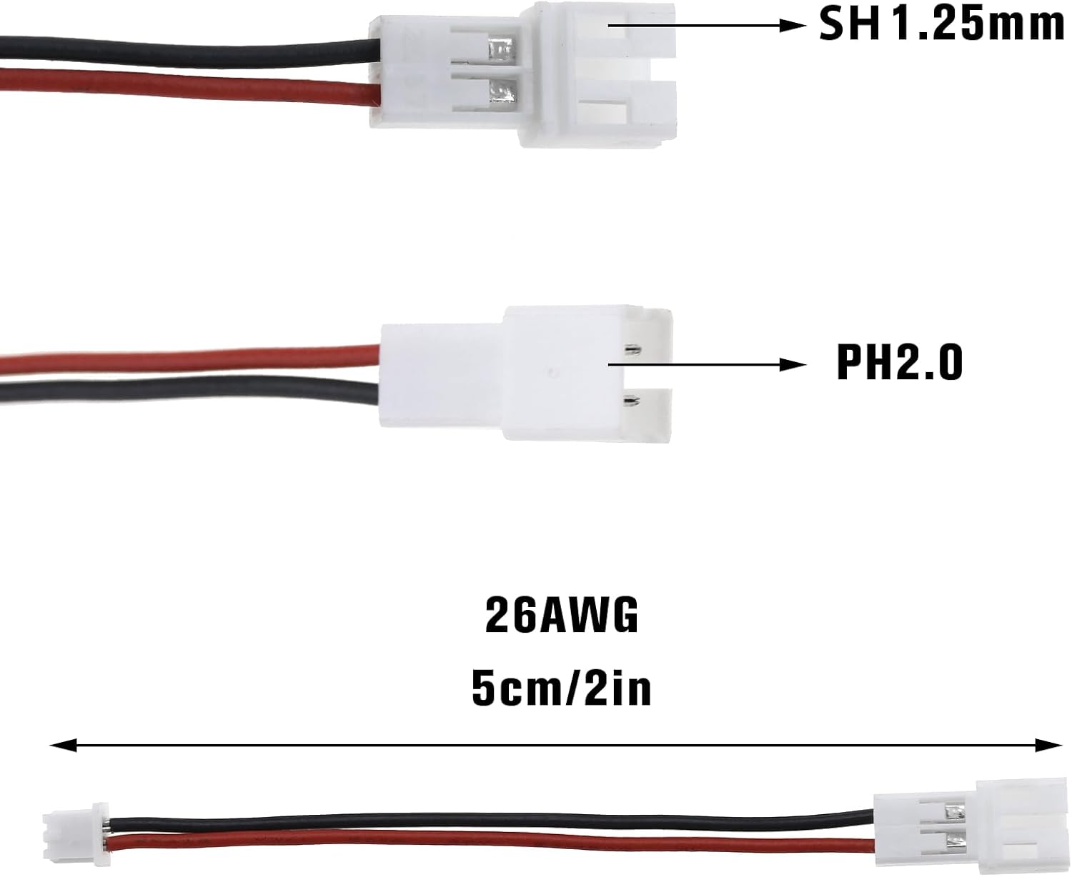 [Cavo di collegamento]: perfetto per test di tensione della batteria, caricabatterie USB per batterie LiPo o schede di ricarica per batterie LiHV, ecc. [Adattatore di conversione a 2 pin]: si tratta di una presa micro JST-1,25SH a un connettore JST-PH-2.0. [26 AWG]: il filo è lungo circa 5 cm. [Applicazione]: Suitalbe per mini elicotteri RC, aereo 3D, strisce LED, scintillii, ecc. [Nota]: si prega di confermare la spina e la lunghezza prima dell'acquisto.