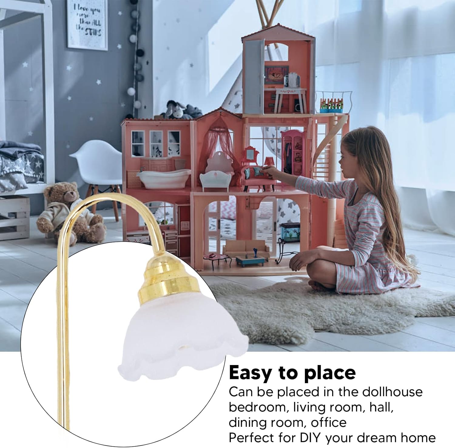 Lavoro squisito: la lampada per le bambole in miniatura ha un aspetto vintage e una luce calda, è progettata magnificamente ed è essenziale per la maggior parte delle Box/Cover delle bambole. Fai da te nella casa dei tuoi sogni: la luce del pavimento della casa delle bambole può essere collocata nella camera da letto, nel soggiorno, nella sala, nella sala da pranzo, nell'ufficio, ecc. Della casa delle bambole, perfetta per il legame nella casa dei tuoi sogni. Batteria a pulsante grasso: la lampada delle Box/Cover delle bambole funziona con batterie a bottone, bassa tensione, più da usare, illuminare la luce e può essere utilizzata normalmente. Crea una sensazione romantica: i mobili in scala 1/12 possono creare una sensazione romantica e illuminare la tua casa delle bambole, il che lo rende il per amici e familiari. Materiali premium: la base della lampada e la lampada sono realizzate in metallo e lo schermo è realizzato in plastica di alta qualità, che non è facile da danneggiare.