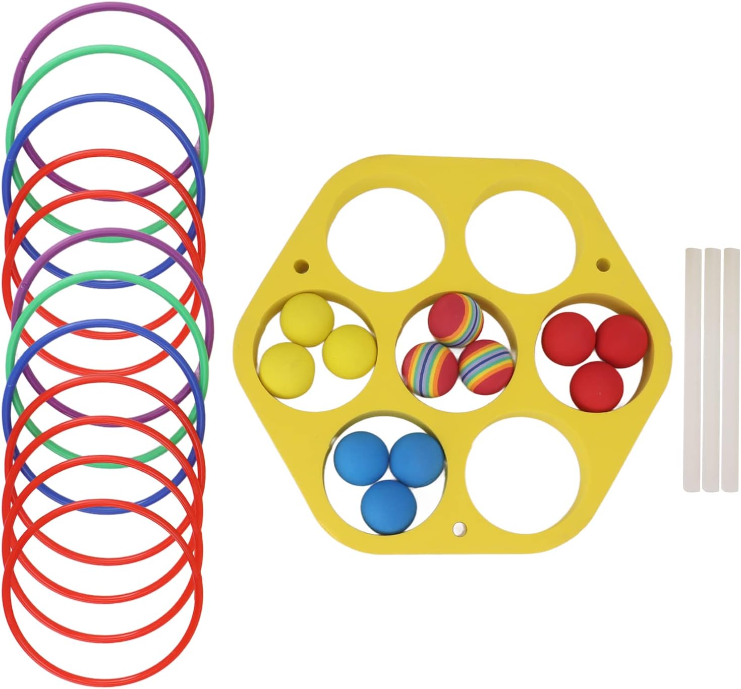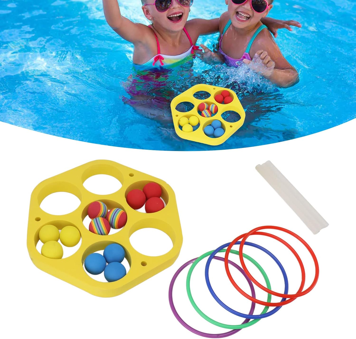 GIOCHI IN PISCINA: i divertenti giochi in piscina sono giochi giocattolo ideali per le piscine familiari. Questo set comprende 12 palline da lancio (colore casuale), 1 tavola da nuoto e 12 anelli da lancio (colore casuale), ed è un grande giocattolo galleggiante per piscine e feste in giardino PORTATILE PER LE VACANZE: i giocattoli per sport acquatici della squadra hanno un imballaggio leggero e sono facili da trasportare, adatti per l'estate e le vacanze. Scopri più divertimento con i giocattoli estivi PER TUTTE LE ETÀ: questo non è un gioco divertente per i bambini, ma è anche ideale per tutta la famiglia e un ottimo accessorio per giochi di squadra. Il design in schiuma circolare esagonale preilluminato lo rende facile da trasportare e da giocare EVA LEGGERO: la schiuma galleggiante in materiale EVA è abbastanza leggera da galleggiare e lanciare sull'acqua. Il materiale di grandi dimensioni mantiene i giocattoli da nuoto in piscina in buone condizioni e regala alla tua famiglia un divertimento senza fine ACCESSORI PER IL GIOCO IN PISCINA: Progettato con elementi di gioco di lancio, questo gioco galleggiante dispone anche di indicatori di punteggio per rendere il tuo gioco di festa in piscina più competitivo. Questo è un fantastico gioco di biliardo che incoraggia l'esercizio