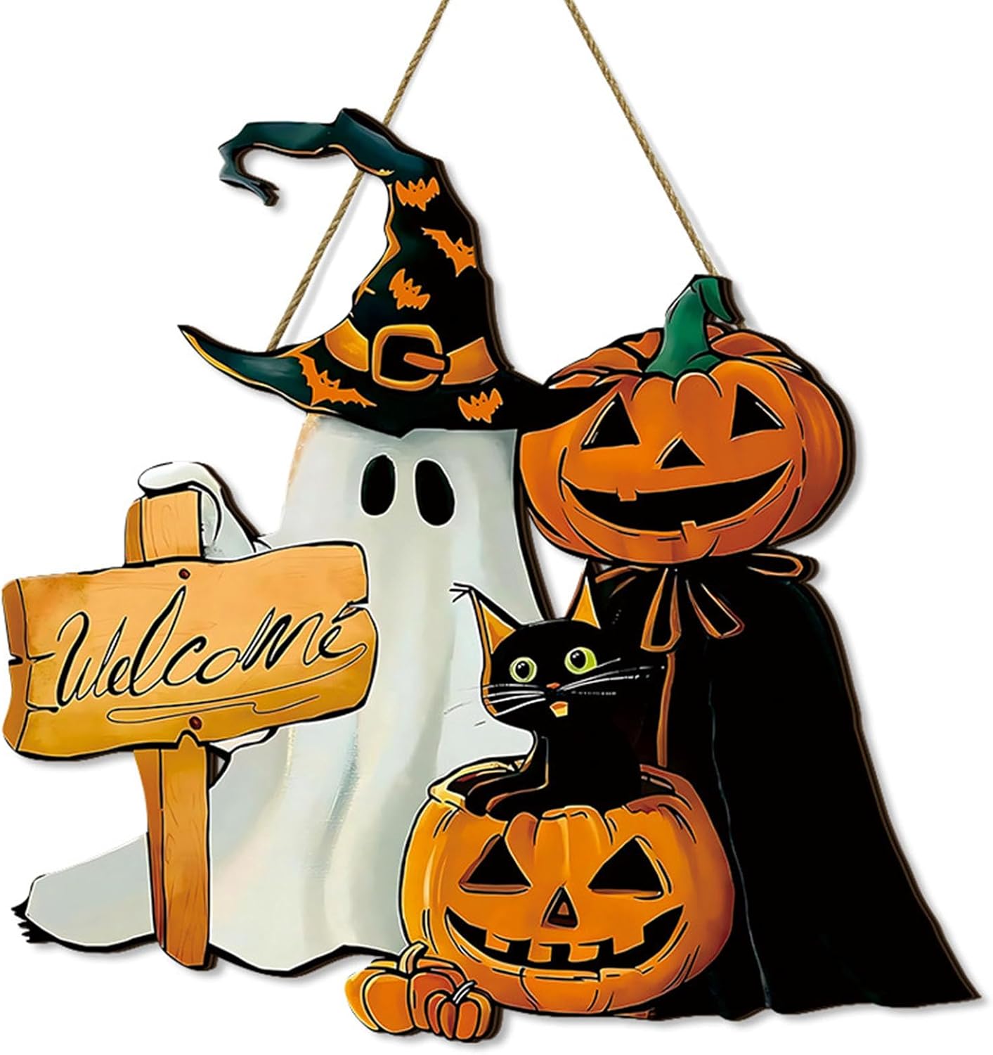 Attira l'attenzione delle persone: questa decorazione per porta di Halloween ha le giuste dimensioni e il peso ridotto, è adatta per essere appesa in molti luoghi senza occupare troppo spazio, e può attirare meglio l'attenzione delle persone Ideale per decorazioni domestiche: riceverete 1 pezzo di decorazione per la porta di casa di Halloween, che sembra elegante e bella, decorazione ideale per la tua casa ad Halloween, può creare atmosfere interessanti Il design della decorazione per porta di Halloween adotta un design classico, gatti e Happy Halloween e sembra bello ed elegante e può lasciare un'impressione più profonda ai vostri ospiti Occasioni disponibili da appendere: la targa allegra per porta di Halloween può essere appesa alla parete, alla porta, alla finestra o alla parete. Puoi anche appendere per decorare la tua camera da letto, il soggiorno, la cucina, il giardino o il cortile per creare una ricca atmosfera festosa Materiali in legno affidabili e durevoli: la targa per porta di Halloween è realizzata con materiali in legno affidabili e durevoli, non si rompe o si rompe facilmente, i motivi sono chiaramente stampati, non sbiadiscono facilmente, possono offrirti una buona esperienza di utilizzo, puoi acquistare con fiducia