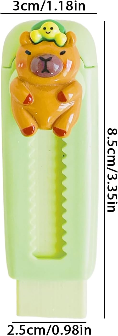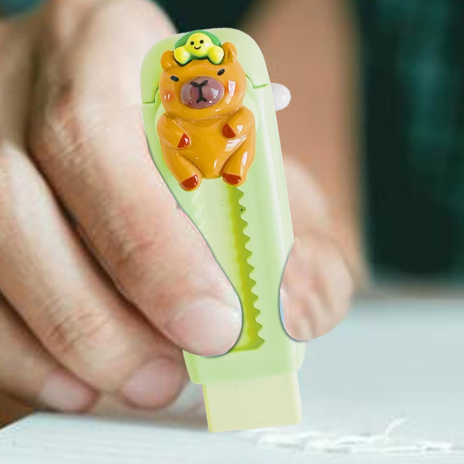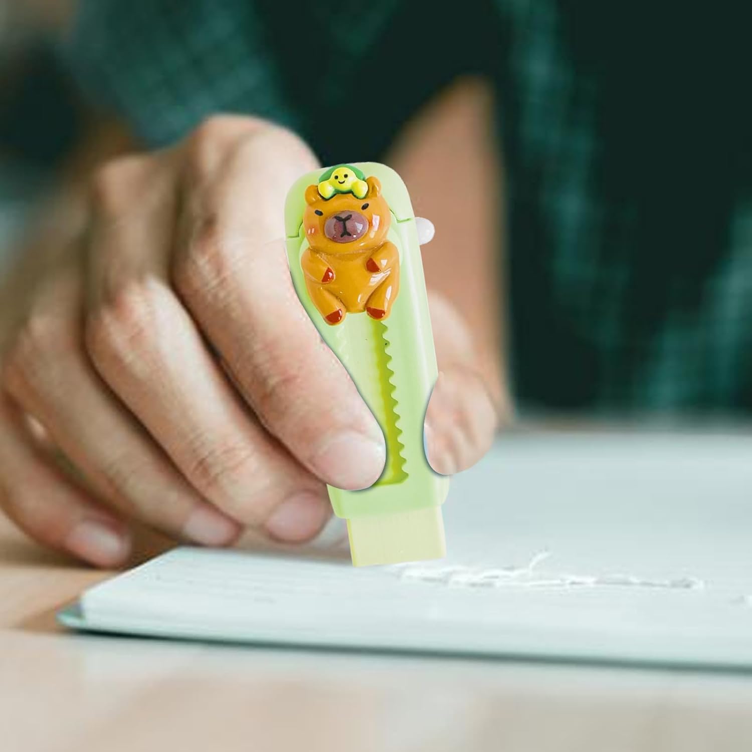 Innovazione di design push-pull: adottando un design innovativo push-pull, la nostra gomma retrattile consente una cancellazione efficace e facile ogni volta. Its mechanism, similar to a small toy, improves precision and cleanliness, providing a revolutionary erasing experience Pulito senza sforzo: con la nostra gomma termoretraibile, utilizzare un materiale dolce gourmet selezionato una cancellazione senza sforzo delle matite e della scrittura per mantenere la qualità del tuo lavoro, mantenendo la tua creatività che scorre liberamente. Proteggi la tua arte come nuova, senza lasciare tracce per un prodotto finale pulito e lucido Testato sicuro per la pelle: con un design innocuo, la nostra gomma retrattile è stata rigorosamente testata per essere completamente sicura e innocua per la pelle più delicata. Realizzato con materiali privi di odor e sicuri, non provoca irritazioni o danni all'utente Design portatile: dì addio ai fastidiosi errori con questa gomma retrattile che è piccola e facile da trasportare. Il suo design compatto e portatile lo rende pronto ad aiutarti a risolvere piccoli disturbi nel tuo studio. Si adatta facilmente alla borsa o alla tasca del tuo bambino, questa gomma è un partner ideale per disegnare e fare i compiti Bel design: goditi un'esperienza di apprendimento emozionante con la bella figura Capybara retrattile del nostro Eraser e il nostro design a colori vivaci. La giocosità di tuo figlio sarà incoraggiata e la loro creatività sarà ispirata a brillare con possibilità illimitate