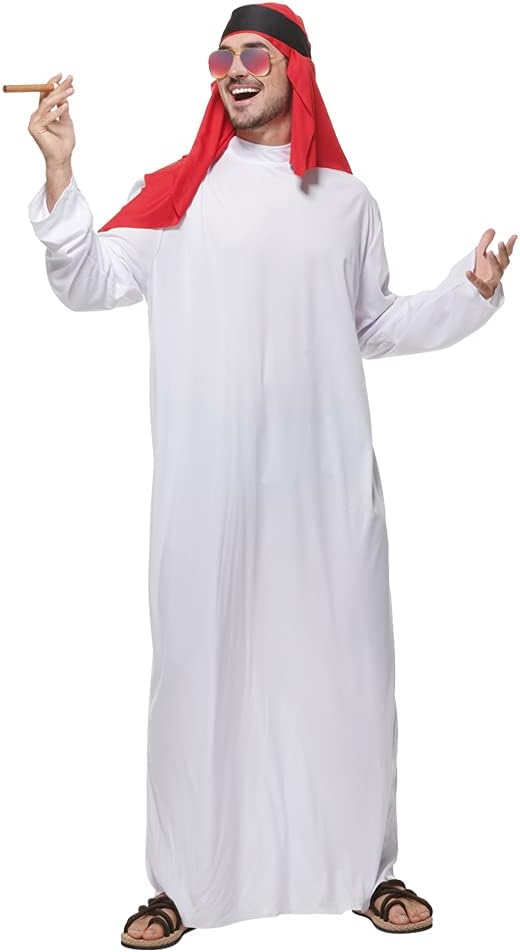Eraspooky Ti invitiamo a goderti i nostri costumi per le feste! Ci sforziamo di creare la migliore atmosfera festosa per tutti. Il costume da abito da uomo arabo include una veste bianca, un turbante rosso e una fascia nera. L'abito è il tradizionale abito arabo ed è bianco. Il costume si applica a costumi di Halloween, Pasqua, festival, feste a tema, carnevale, giochi di ruolo occidentali, costumi divertenti, attività, giochi scolastici ecc. Eraspooky ti farò divertire. Tabella delle taglie (cm/in): Taglia M: Lunghezza dei vestiti:144cm/56.6in,Busto:120cm/47.2in,Lunghezza della manica: 66 cm/25,9 pollici Taglia XL: Lunghezza abbigliamento:149 cm/586 pollici,Busto:134 cm/52,7 pollici,Lunghezza manica:68 cm/26,7 pollici. AVVISO: Si prega di fare riferimento alla tabella delle taglie e misurare la taglia prima dell'acquisto per ottenere una migliore vestibilità.Se avete domande, non esitate a contattarci, vi risponderemo entro 24 ore. Istruzioni: Lavare a mano Scolare all'ombra Non candeggiare