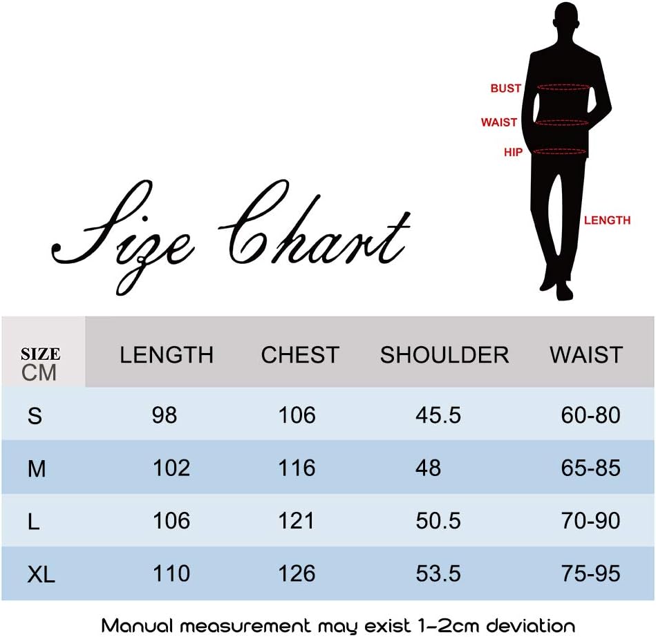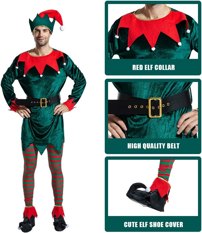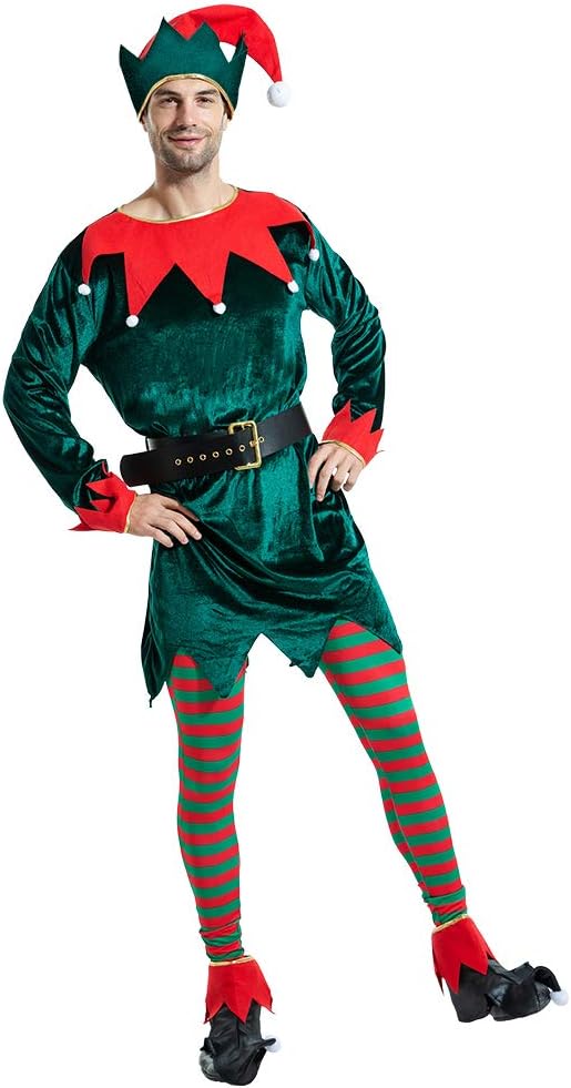 Eraspooky We invite you to enjoy yourself with our fancy dress costumes! We are devoted to create the best holiday environment for everyone. The charm of funny costume is infinite. We hope these lovely costumes will add fun to your day. And MERRY CHRISTMAS ! Take part in your festival carnival and cosplay parties with this lovely Christmas elf costume suit. You will be the one spreading seasonal joy. Size(CM): LENGTH(S 98 M 102 L 106 XL 110) CHEST(S 106 M 116 L 121 XL 126) SHOULDER(S 45.5 M 48 L 50.5 XL53.5) WAIST(S 60-80 M 65-85 L 70-90 XL 75-95) Note: Hand wash in cold water. Do not bleach. Do not iron. Line dry.