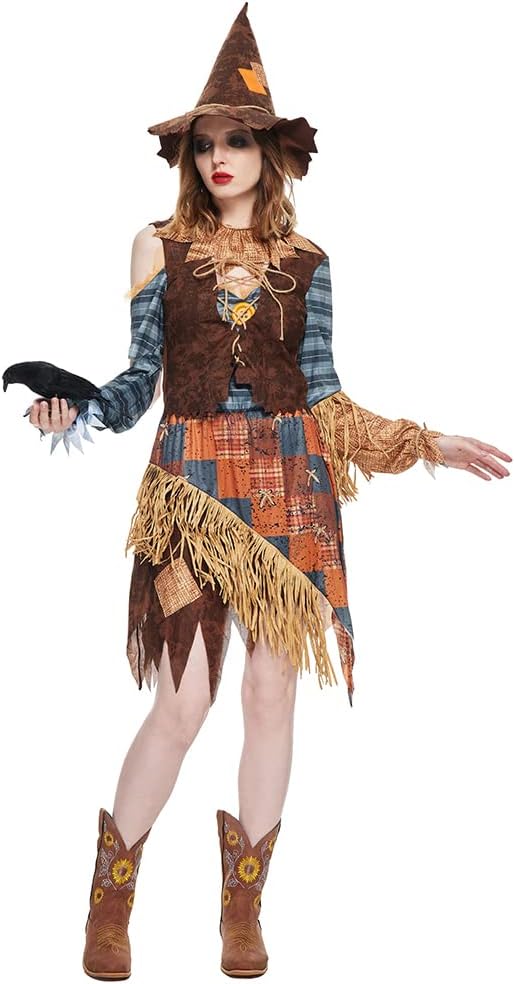 EraSpooky si impegna a fornirti prodotti e servizi migliori che renderanno la tua vita migliore. Il costume da spaventapasseri inquietante comprende un abito a tunica invecchiato con patchwork stampato sull'orlo della gonna. Il cappello ha bordi frastagliati irregolari, patchwork stampato al centro ed è decorato con un laccio in corda. Il gilet e il colletto sono decorati anche con un laccio in corda, finiture in finto fieno sulle maniche e sull'orlo. Sei entrato nel posto malvagio, faresti meglio a stare attento. Chiarimento sulle dimensioni: S: Lunghezza top 45 cm/17,7 pollici, Busto 84 cm/33,1 pollici, Lunghezza gonna 72 cm/28,3 pollici M: Lunghezza top 46 cm/18,1 pollici, Busto 92 cm/36,2 pollici, Lunghezza gonna 80 cm/31,5 pollici L: Lunghezza top 47 cm/18,5 pollici, Busto 100 cm/39,4 pollici, Lunghezza gonna 88 cm/34,6 pollici Elenco dei pacchetti: Abito, colletto, cappello. Nota: Lavare a mano solo con acqua fredda. Solo linea asciutta. Non usare la candeggina.