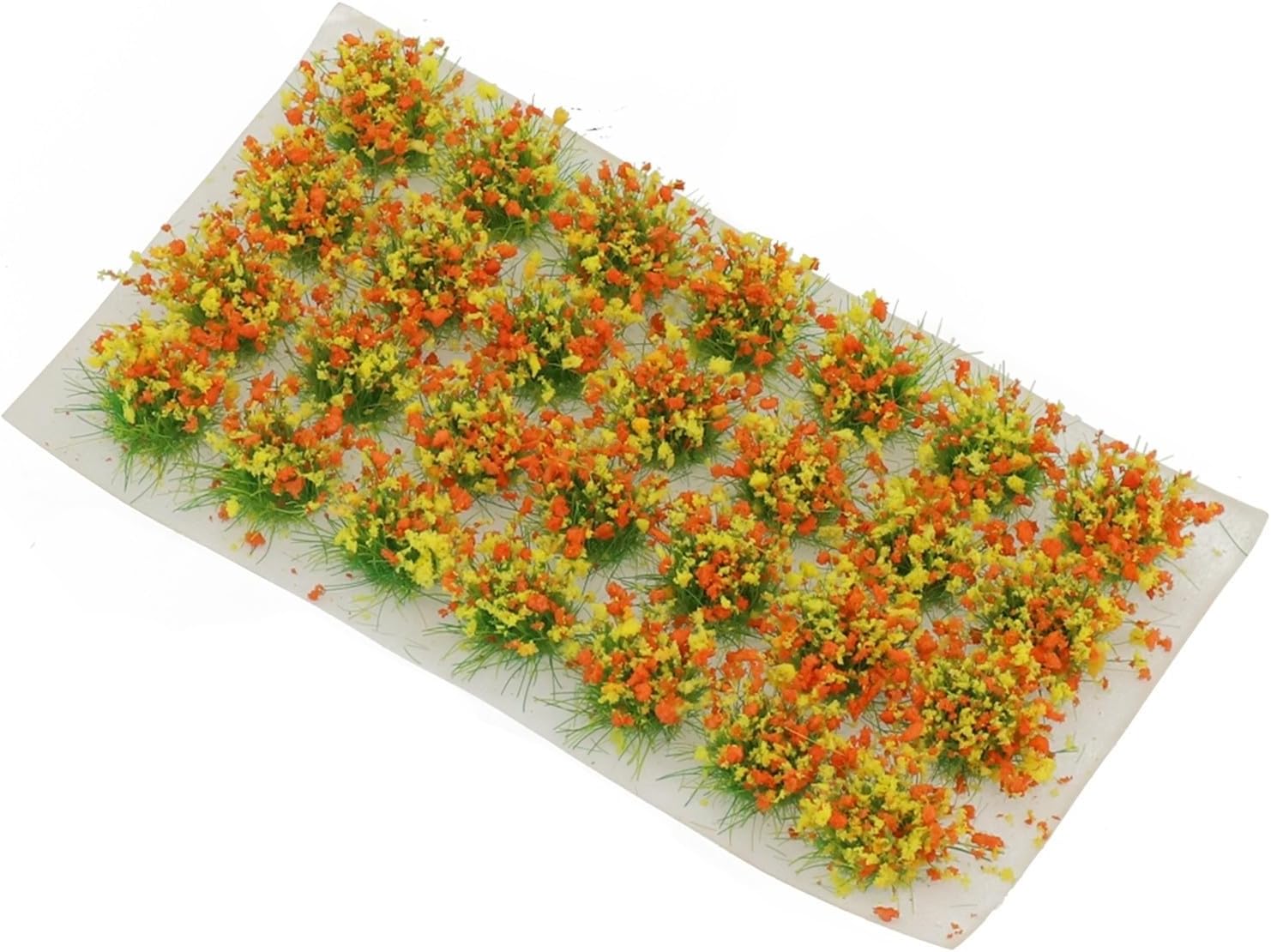 Erba statica per terreno fai da te, 28 pezzi, grappoli misti di fiori selvatici, perfetti per modelli in miniatura (giallo arancione)