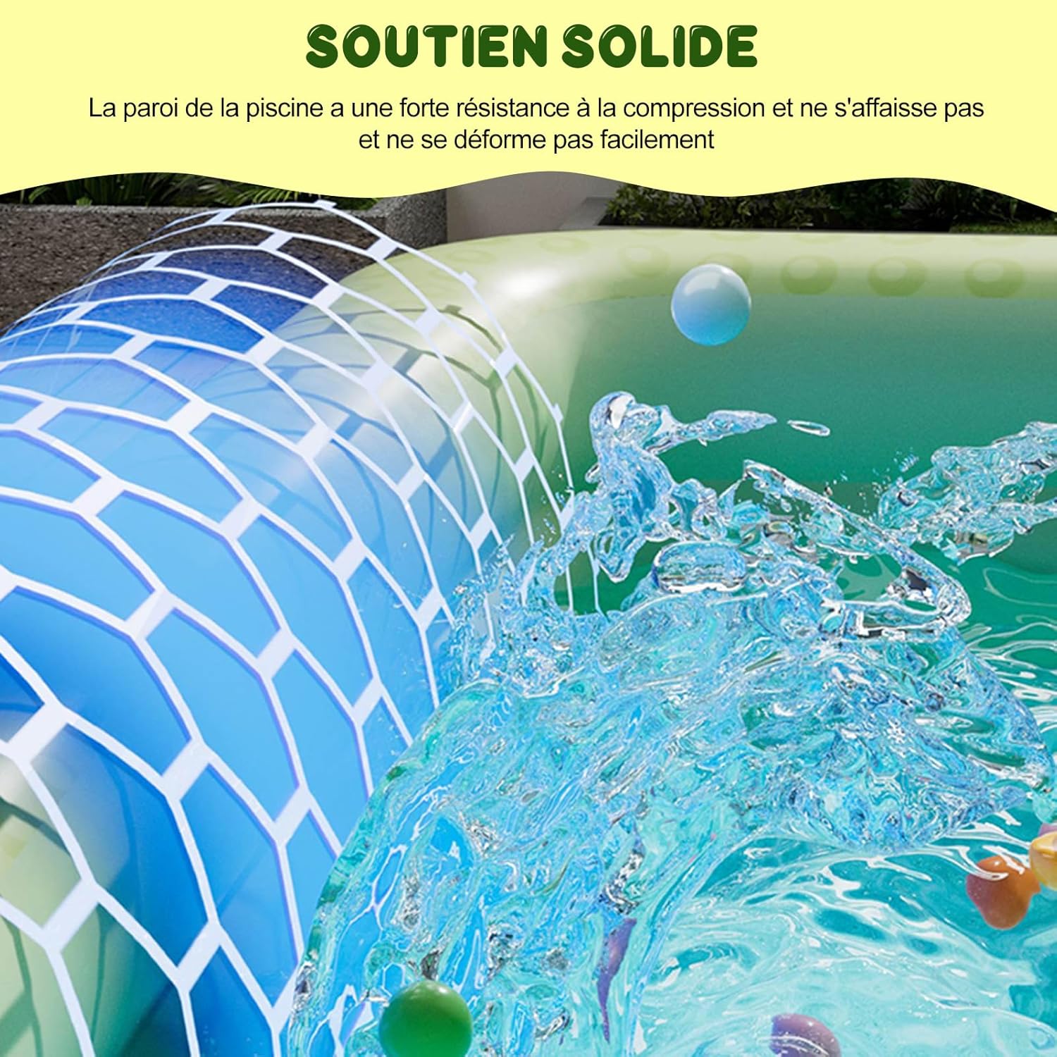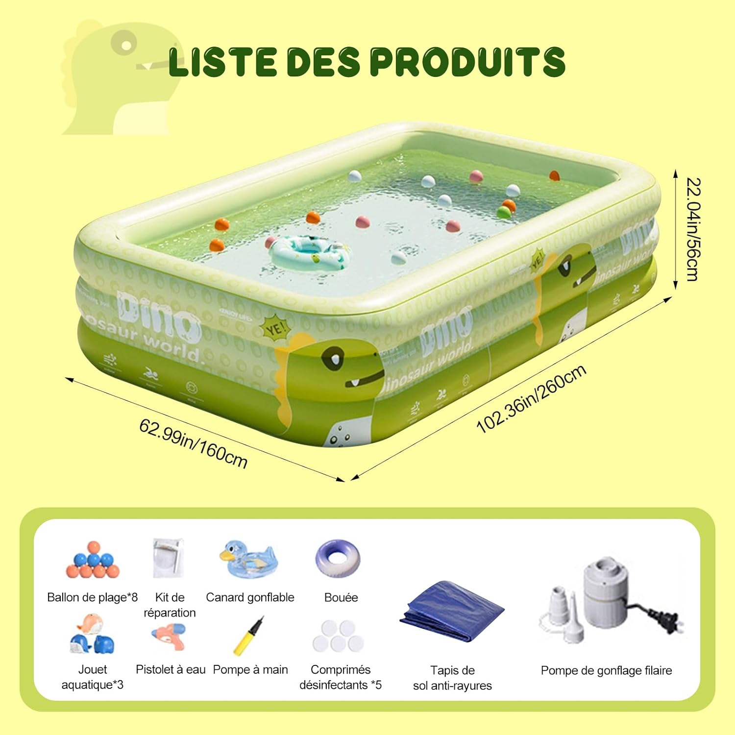 【Tappetino antigraffio】 Deve esserci un tappetino antigraffio tra la piscina e il terreno per proteggere la piscina dall'usura. Prima di installare la piscina, rimuovi i tappetini protettivi per permetterti di giocare e rilassarti di più in tutta tranquillità. 【Materiale durevole】 Realizzata con robusti materiali ispessiti, la robusta parete gonfiabile garantisce stabilità e fornisce ulteriore elasticità, giocare con l'acqua non è facile da crollare, creando i migliori ricordi per la tua famiglia. 【Goditi il divertimento】 Ti forniremo un pacchetto di toppe, giocattoli di cartoni animati da piscina, yacht con anatre ad anello, così potrai giocare con i tuoi bambini più felici, adatti a più persone. È la scelta perfetta per sfuggire al caldo e godersi del tempo di qualità in famiglia. Facile da usare: è sufficiente utilizzare una valvola di scarico a rilascio facile per scaricare l'acqua della piscina. Archiviazione per risparmiare spazio. Portare gioia e il massimo comfort ai bambini. 【Il nostro servizio】 Forniamo una risposta rapida 24 ore su 24 e un servizio clienti amichevole a vita. Se sei soddisfatto dei nostri prodotti, lascia feedback e commenti, ti ringraziamo per il tuo incoraggiamento.