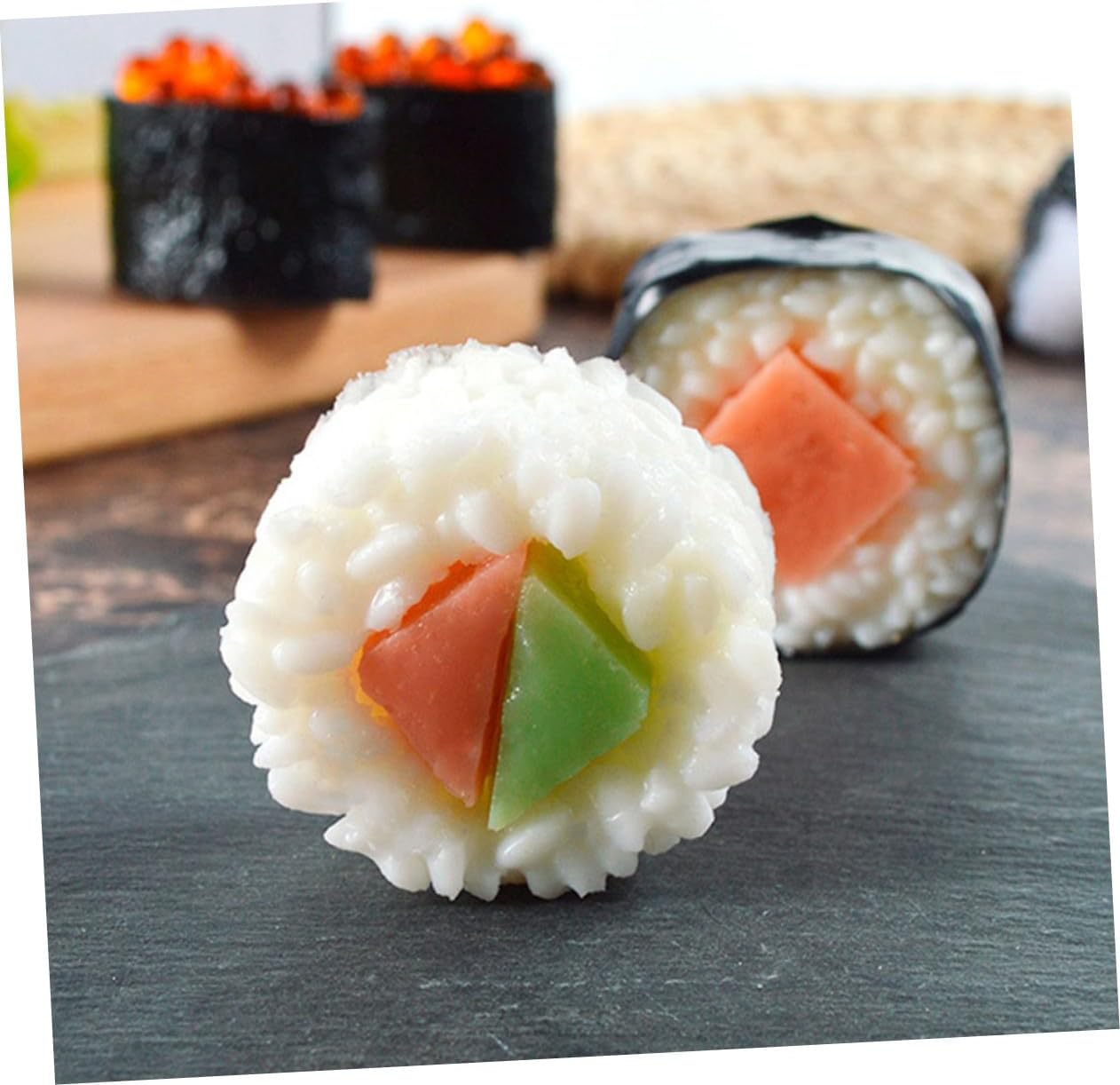 Design realistico: sushi è realizzato con attenzione ai dettagli, fornendo un aspetto realistico e realistico per qualsiasi esposizione, oggetti per sushi, onigiri realistico Fedeltà: sushi simulato un'elevata fedeltà, rendendolo quasi indistinguibile sushi, per esposizioni realistiche, oggetti per foto, cibo sushi realistico Oggetti : ideali per l'uso come oggetti per foto, oggetti da esposizione, rendendoli un'aggiunta versatile a qualsiasi collezione, cibo , oggetti alimentari realistici Applicazioni versatili: adatto per l'uso in fotografia, esposizioni ristoranti, offre versatilità e praticità, giocattolo sushi simulato, decorazioni alimentari realistiche Idea regalo creativa: questi modelli sushi realistici rappresentano un regalo e premuroso per chiunque apprezzi e la giapponese, modelli onigiri realistici, onigiri realistico