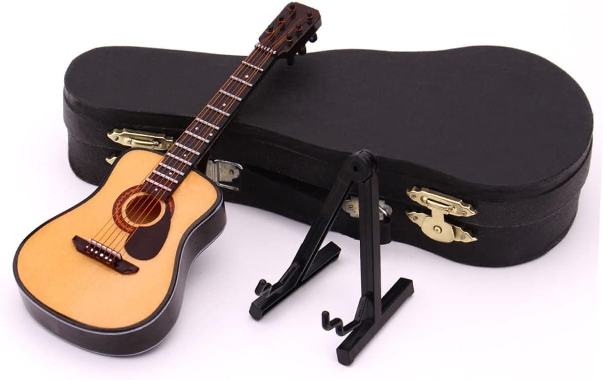 Strumento in miniatura: la lavorazione pregiata lo rende resistente allo sbiadimento, piccolo di chitarra elettrica Mini ornamento da scrivania: realizzato in materiale plastico, per un uso a lungo termine e non facile da deformare, piccola chitarra di scena Mini di chitarra da appendere: ideale per la tua famiglia, i tuoi amici o i tuoi colleghi, strumento finto Modelli di strumenti musicali in miniatura: possono anche essere usati come oggetti di scena per foto con questo delicato di chitarra, mini decorazione Statuetta di strumento musicale: adorabile, la rende più attraente e aggiungerà un'atmosfera alla tua casa, piccole chitarre decorative