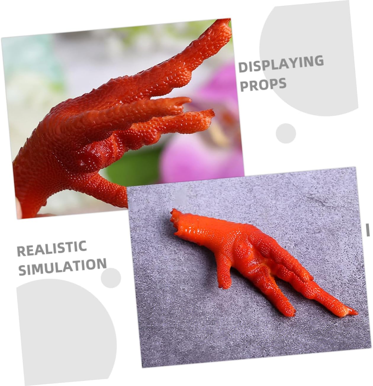 Accessori fotografici realistici: migliora la tua fotografia di cibo con questi modelli realistici di zampe di gallina e rendi le tue foto più attraenti e autentiche. Nidi per galline, costume per zampe di gallina per adulti Oggetti di scena fotografici: ideali per la fotografia realistica e di cibo. Questi modelli danno vita ai piatti con il loro aspetto realistico. Kit per pollaio di pan di zenzero, aspetto autentico per la simulazione della carne: questi modelli di zampe di gallina sono progettati per assomigliare molto alle vere zampe di gallina, aggiungendo un tocco di realismo a qualsiasi display. ali artificiali, decorazione artificiale di alimenti Multiuso: ideali per impiattare il cibo, decorazioni per la tavola di hotel e come oggetti di scena per la fotografia. Questi modelli di zampe di gallina servono a molteplici scopi Oggetti di scena realistici per la fotografia: ideali per aggiungere un tocco realistico alla fotografia di cibo. Questi modelli aiutano a creare immagini straordinarie e credibili, feste di ali di pollo, kit per salamoia di pollo