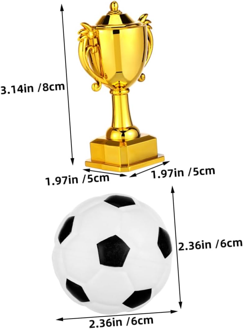 Elegante aspetto : la superficie lucida migliora l'estetica generale delle decorazioni per tue feste, mini in plastica, premi in plastica Applicazioni flessibili: la decorazione è adatta per decorare torte, o come oggetti creativi per giochi e attività , del calcio, plastica La finitura in brillante fa questi trofei si distinguano come accattivanti decorativi, topper per cupcake a forma pallone da calcio, trofei Calcio: celebra l'amore per calcio con questi trofei a tema, adatti ai agli adulti, trofei , trofei per Dimensioni pronte per la : progettate per adattarsi perfettamente agli allestimenti delle feste, queste mini trofei sono ideali per eventi a tema sportivo, decorazioni per torte compleanno a tema calcistico, decorazioni per torte a tema calcistico