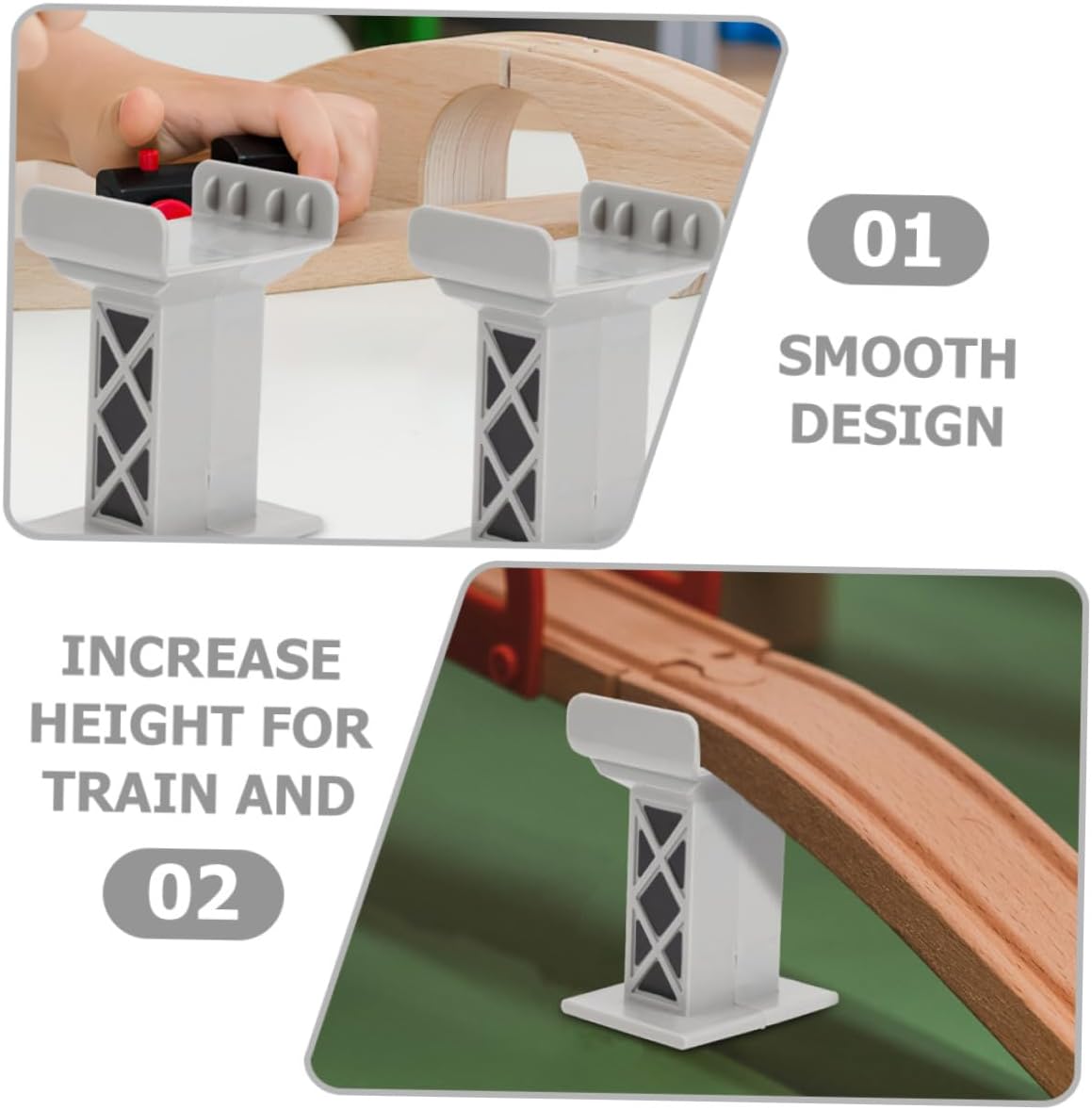 Ponte riser: presenta dimensioni compatte e un design leggero, perfetto per suonare, supporti per binari ferroviari Accessori per treni giocattolo: i pezzi di supporto per il ponte dei binari del treno aiutano a migliorare la capacità pratica di costruire il proprio ponte dei binari del treno, giocattoli per treni per Rialzi per binari del treno: il è realizzato in materiale plastico, resistente e pratico, materiale plastico selezionato, non facile da deformare o rompere, blocco del molo Supporti per ponti di trenini giocattolo: supporto per ponti simulati per trenini per soddisfare la tua passione per i bei ponti, giocattoli per ponti per piccoli Supporto per binari ferroviari: aggiungi un po' di altezza al tuo set ferroviario con il giocattolo accessorio per ponti ferroviari, le colline sono divertenti, supporti per ponti ferroviari